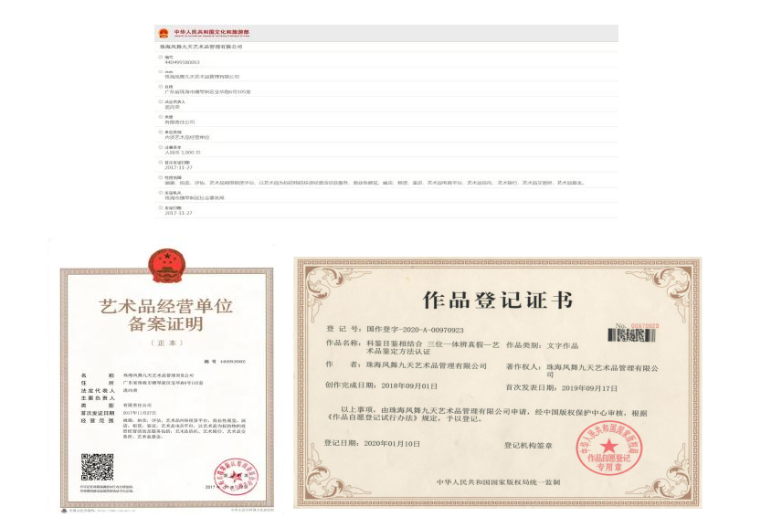 庞馆长决定用签订协议的形式与北京文博科技文物鉴定咨询有限公司合作,自己尝试科检鉴定,并以“目检加科检,国宝现民间”为题将鉴定成果写成文章,在2017年11月18日举办的《庆祝19大胜利闭幕中国一带一路中国艺术珍品展》图录中以代前言的形式发表。正如许多新生事物都有缺陷一样,经过一段实践,庞馆长发现X射线光谱仪的缺陷,一是因为设备大小限制,某些藏品无法检测;二是由于数据不全,对某些器物的检测结论不够准确。2017年量子检测仪出现后,他敏锐地意识到量子检测仪和X射线光谱仪可以互补,便召集公司骨干进行研究,引进了司法鉴定常用的痕迹检测技术,创造了以微痕检测、X射线光谱仪化学检测、量子断代物理检测三位一体的科检鉴定方法,鉴定准确率达到了95%以上,经过向国家知识版权保护中心申请,在国家版权局取得有效登记。“既然准确率不一定能达到100%,为什么公司鉴定证书承诺对鉴定结论承担法律责任?”针对好心人的提醒,庞馆长认真地说,市场经济是合约经济,你要干这个事,吃这碗饭,就要有担当,只有100%负责才能令藏家100%满意。“既然量子检测仪这么准确,为什么还有人反对?”在鉴定现场有人提出疑问,庞馆长胸有成竹、从容应对,他说:“实践是检验真理的碓一标准”,对反对的原因要进行分析,有的是在理论上想不通,有的是碍于利益冲突。他断言,至今还反对量子鉴定的人,可能根本就没有见过量子鉴定,就是见到了,也不会认真面对。有些专家为什么能容忍其他仪器,唯独不能容忍量子鉴定仪?因为量子鉴定仪太神奇、太准确了,有了它,民间藏家便有了主心骨,伪专家们无言置喙,无法“商量”。