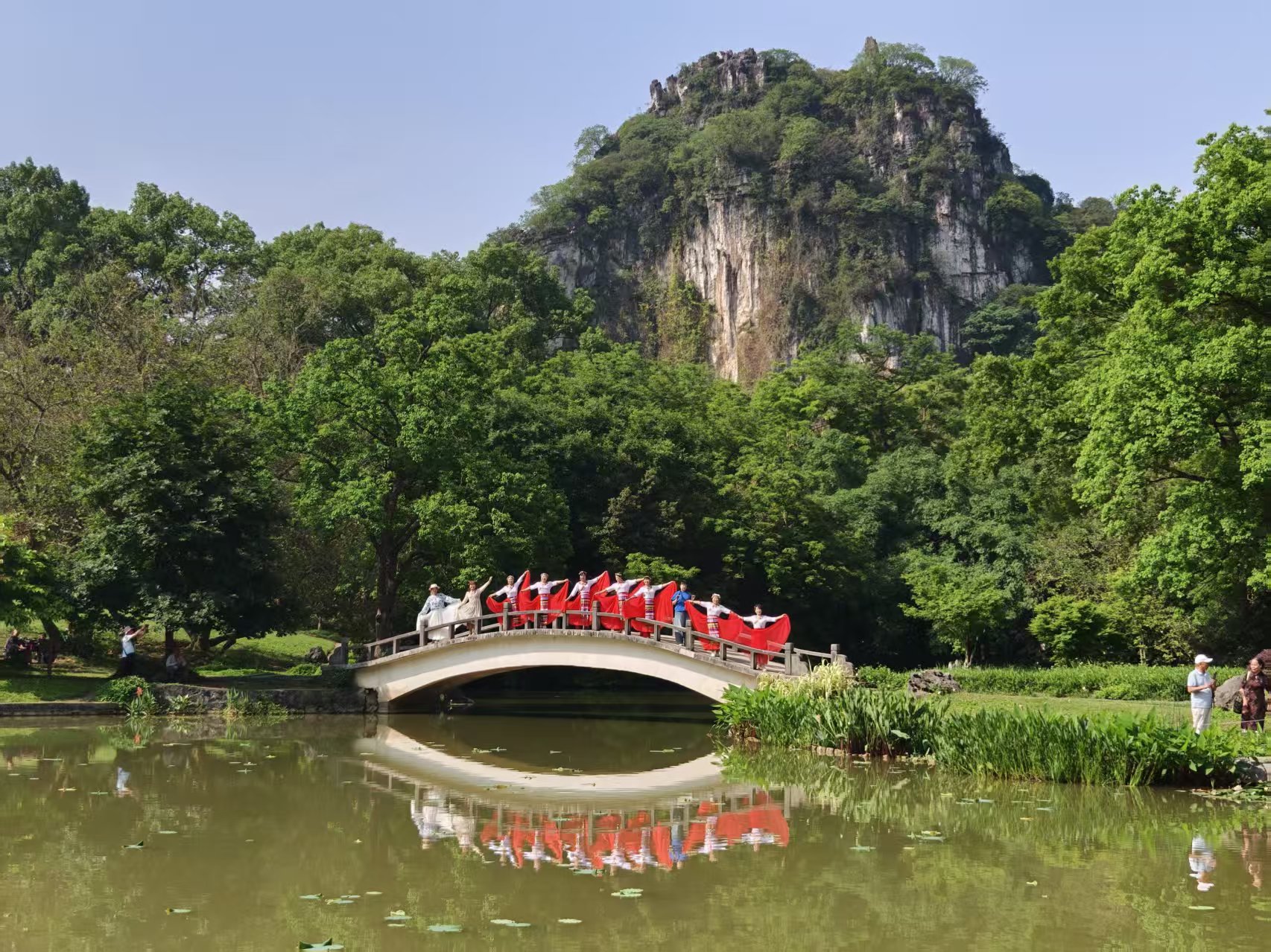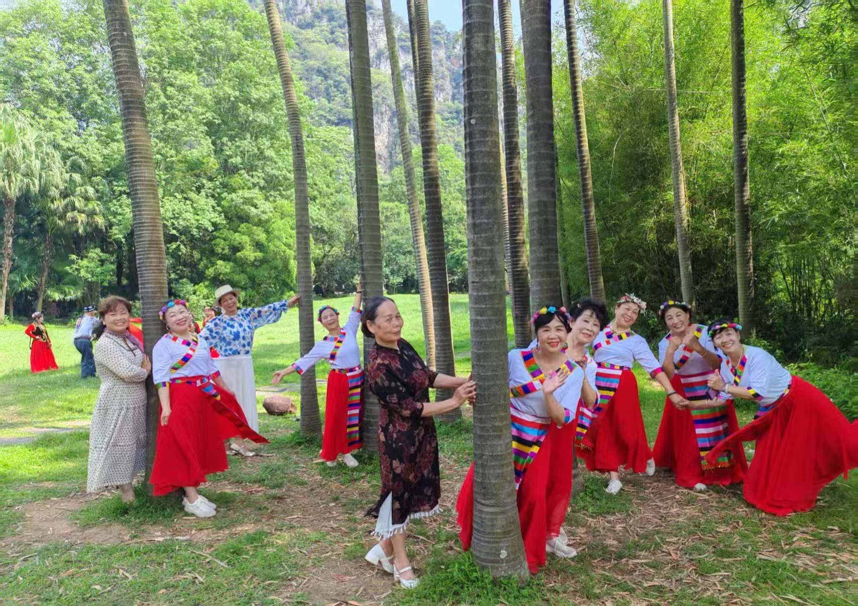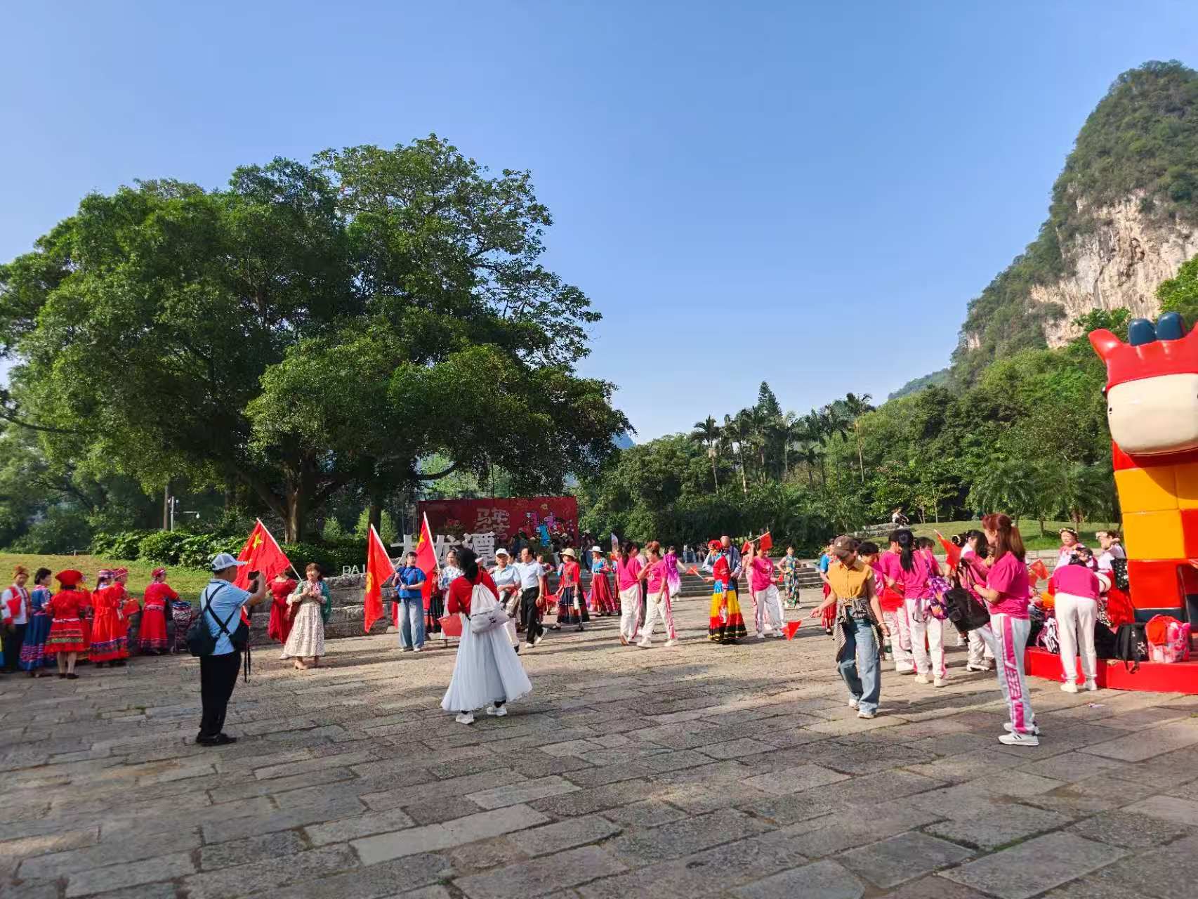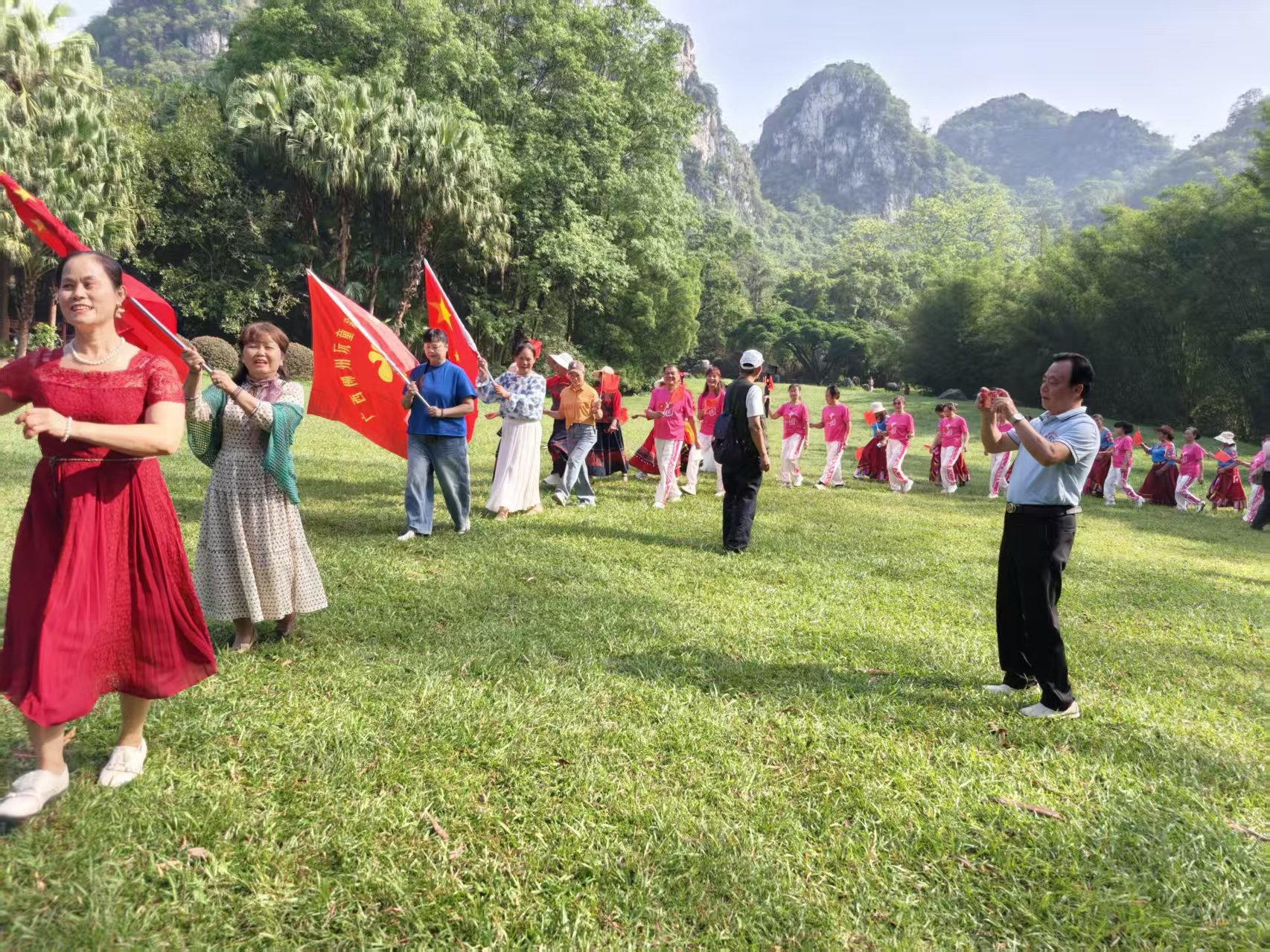 而在富有傳說色彩的美女照鏡景點,山水清幽,奇峰如鏡,隊員們在美女湖畔、小橋邊載歌載舞,為這片喀斯特奇觀注入了靈動的人文氣息。
