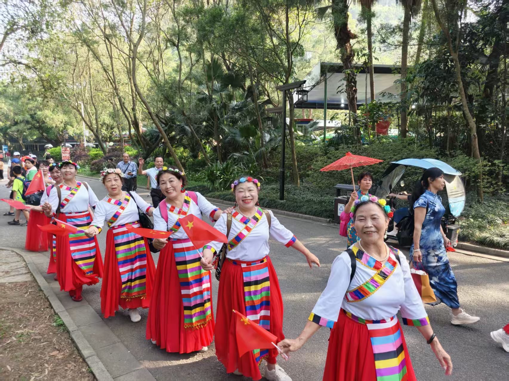 隨後,隊伍分成兩列,身著民族盛裝款款而行,成為園中一道流動的風景線。