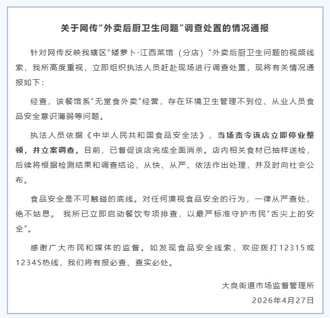 广东佛山一餐馆厨师往炒菜锅吐口水、洗扫把,官方通报