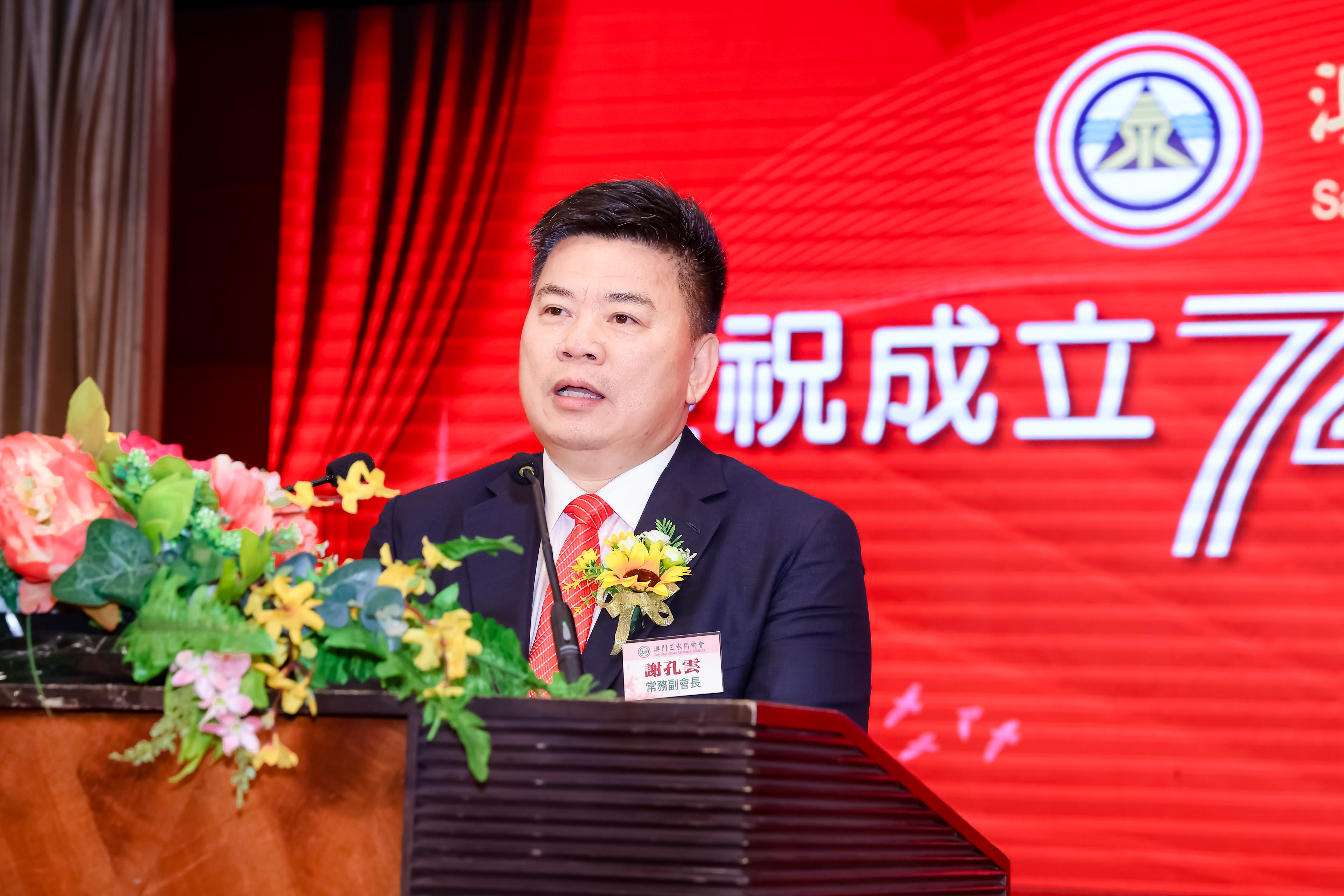 理事长刘艺良致谢辞,感谢全体理监事一直对会务发展尽心尽力、出谋献策,寄语同乡会未来继续团结乡亲、凝聚乡谊,为爱国爱澳爱乡事业作新贡献。
