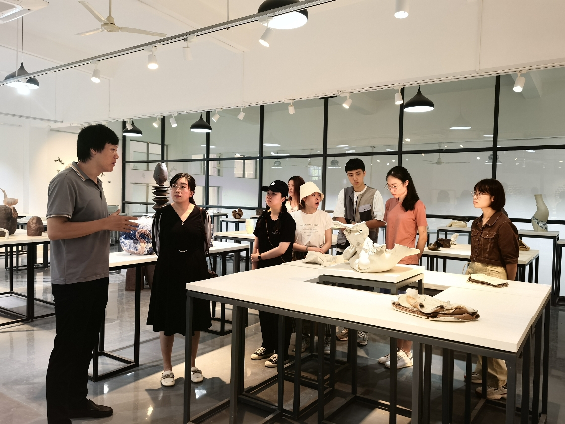 另外,師生團亦到訪有著瓷都美譽的景德鎮市,學習陶瓷在不同年代呈現的形態、技藝的不斷變化和提升,以及對人們生活所帶來的文化薰陶,同時也深深地影響這座城市的文化氣息和底蘊。學生們也親自體驗了釉下彩、拉胚等部分陶瓷工序以及景德鎮的其他非遺手工藝,如畫油紙傘等,豐富了此次訪學的實踐內容。無論是從傳統村落、古建築到非遺技藝的多變形式,還是從文化景觀上都讓學生們全面體會到陶瓷非遺的價值所在。最後,此次活動得到了來自景德鎮陶瓷大學國際學院院長張婧婧、景德鎮中國陶瓷博物館館長馮少俊、景德鎮民窯博物館副館長及陶瓷世家“孫公窯”第四代傳承人孫立新等人的熱情接待和大力協助。