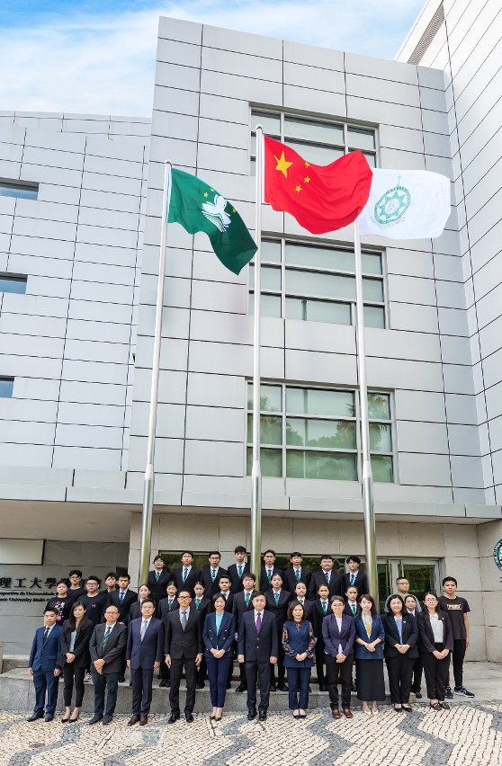 升國旗儀式由澳門理工大學學生國旗儀仗隊執行,儀仗隊邁著鏗鏘有力的步伐護送中華人民共和國國旗、澳門特別行政區區旗和澳門理工大學校旗走向升旗台。五星紅旗在雄壯的國歌聲中冉冉升起,全體師生面向國旗行注目禮,場面莊嚴肅穆。