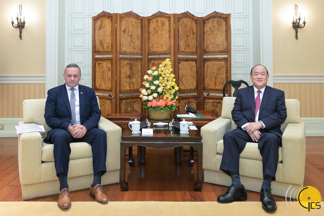 澳门头条讯:行政長官賀一誠今(19)日在政府總部與烏拉圭東岸共和國總統府秘書長阿爾瓦羅.德爾加多(Álvaro Delgado)會面,雙方就促進兩地經貿合作、加強旅遊推廣,以及更好發揮澳門平台作用等議題交流意見。