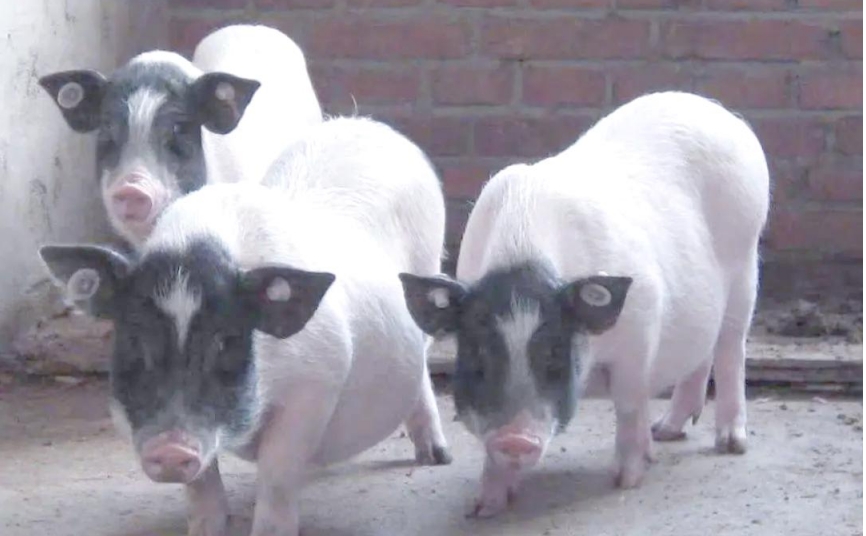 巴馬香豬的外貌令人一見難忘,它們體型矮小、圓潤,呈現出典型的“兩頭黑、中間白”的特徵。部分個體背部還帶有黑斑,額頭上的白線或倒三角型白斑更是增添了幾分神秘色彩,人們形象地稱其為“兩頭烏”。