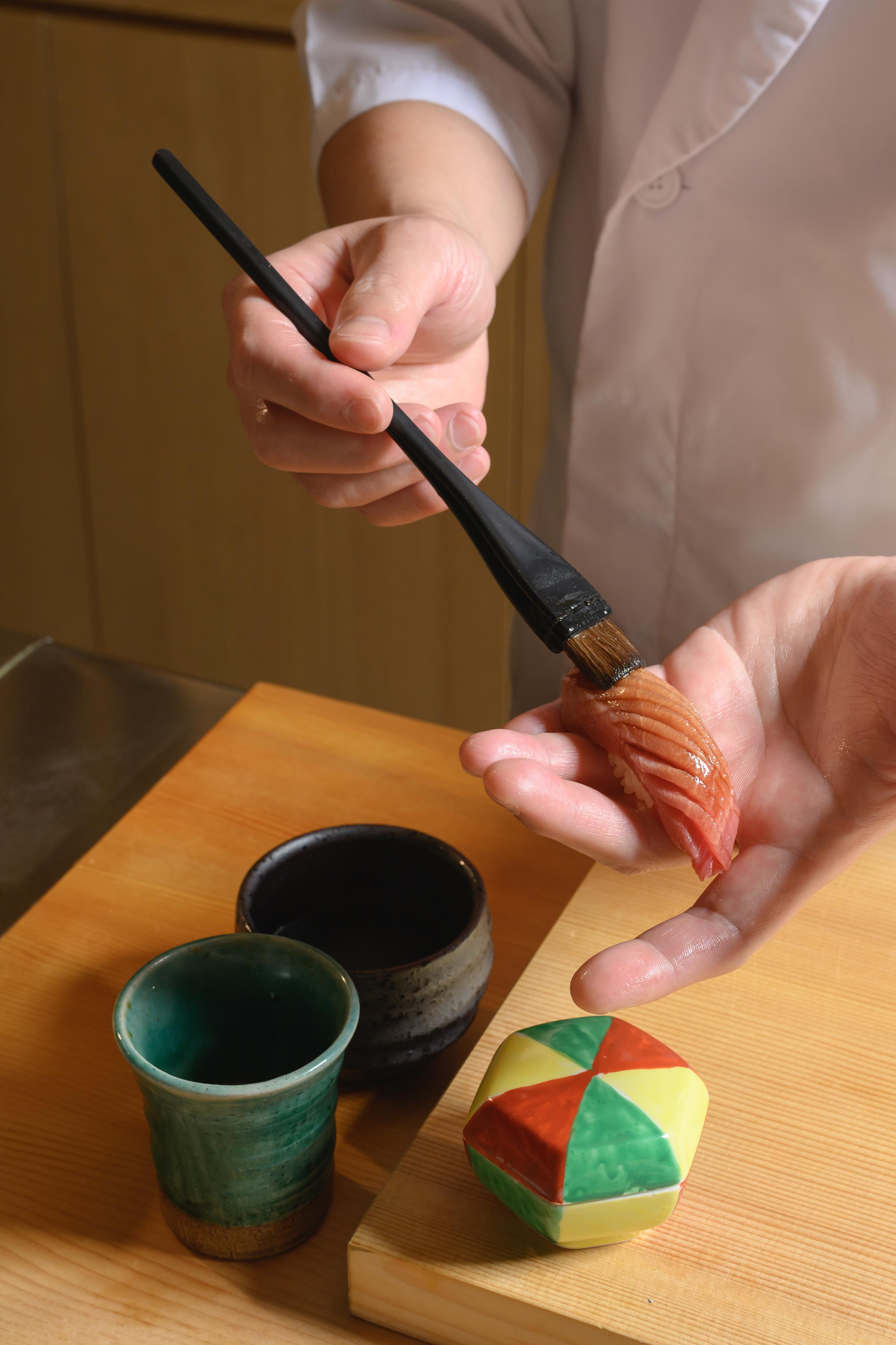 寿司所使用的醋饭也极具讲究,采用三种陈年老醋调和,包括:十年红醋、三年红醋与二年白醋,酸香深邃而圆润,搭配熟成鱼类,口味平衡得刚刚好,也衬托出海味的纯净。