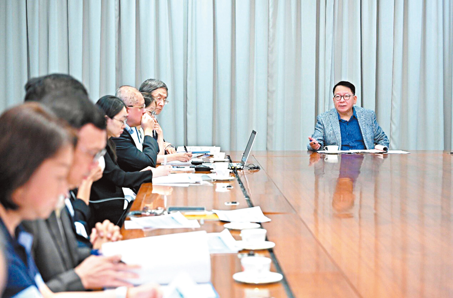 ●政務司司長陳國基(右一)昨日主持應對極端天氣督導委員會會議。