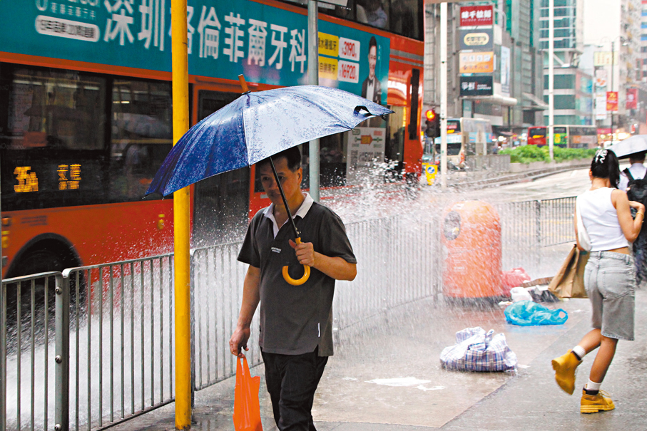 ●昨日黃雨,巴士經過水花四濺。 香港文匯報記者黃艾力 攝