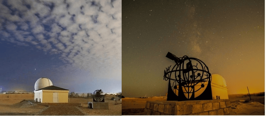 夜幕降临,和恋人一起探访位于阿尔瓦特巴南部沙漠的萨迪姆天文馆(Al Sadeem Astronomy)。这里夜空纯净、云层稀疏、视野开阔,是绝佳的观星地。沙漠的广袤无垠在夜色中更显深邃,目之所及,星光如银河倾泻而下,天与地的尽头竟一时虚实难辨。天文馆设有一个高5.5米的玻璃纤维360度旋转穹顶,中央装有16寸Meade LX850望远镜。通过前沿的天文设备探索宇宙奥秘,让爱意在星光的见证下更加坚定。