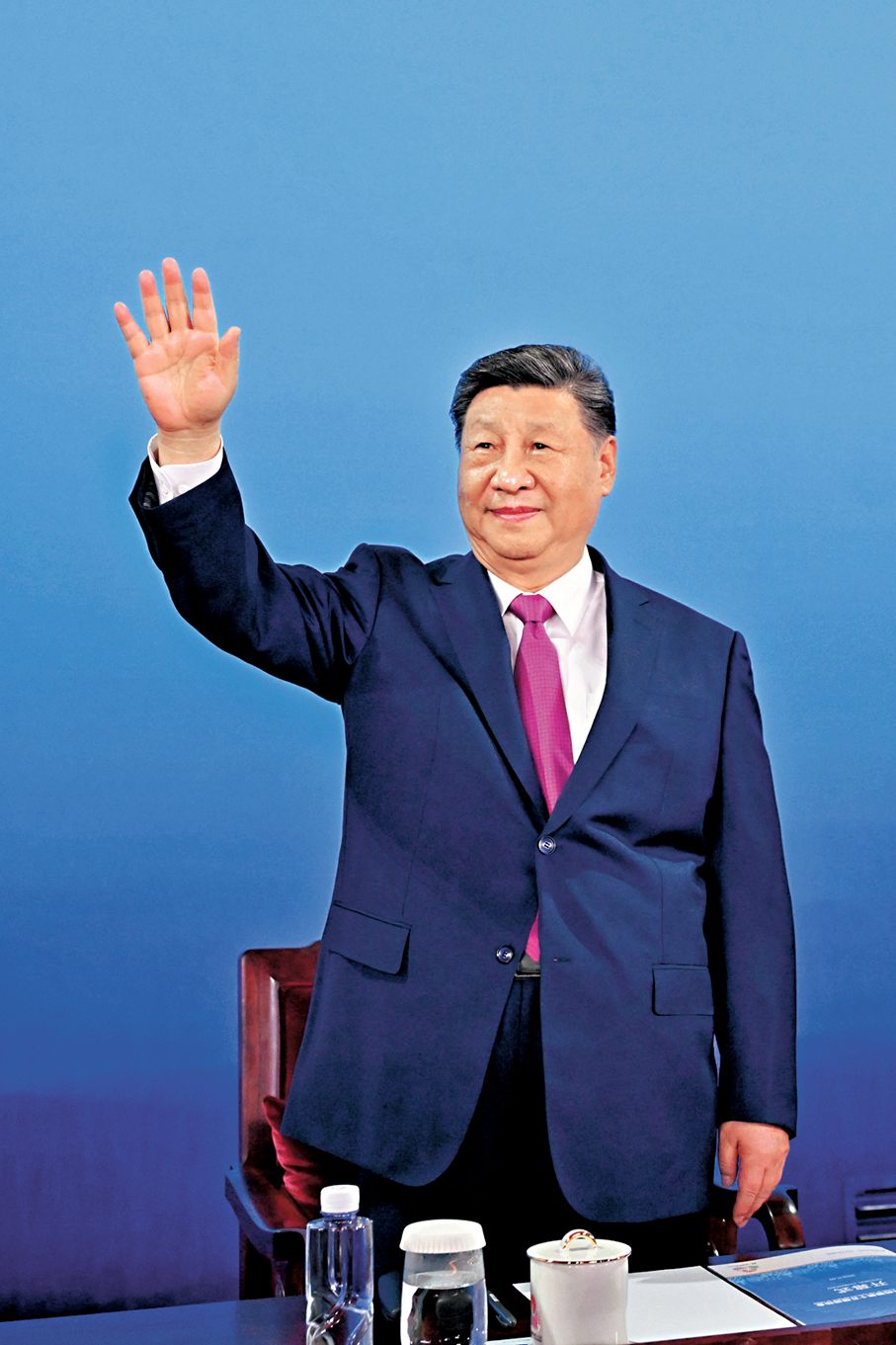 ●中共中央總書記、國家主席、中央軍委主席習近平在廣東省廣州市出席中華人民共和國第十五屆運動會開幕式並宣布運動會開幕。這是習近平在主席台上向大家揮手致意。 新華社