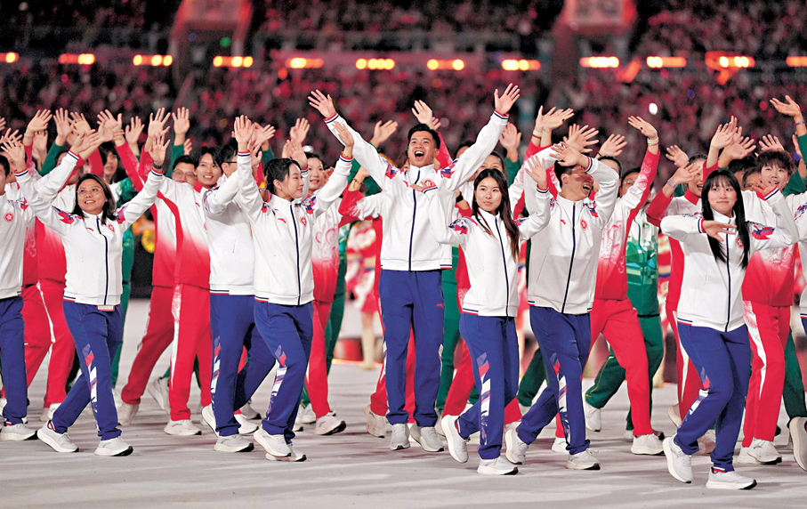 雄壯的國歌聲同步響徹廣東、香港、澳門三地,五星紅旗在同一時刻冉冉升起、迎風飄揚。首次由粵港澳三地聯合舉辦的全國運動會,創下規模最大、賽期最長、承辦城市最多等多項紀錄,既承載着全民共享的體育熱忱,更成為大灣區深度融合的生動縮影,是「一國兩制」偉大構想在體育領域的創新實踐與鮮活註腳。從協同辦賽機制的突破到跨區域資源的整合,三地同心合作的豐碩成果,在開幕式諸多「全運首次」中集中彰顯。這場跨越山海的體育盛會,不僅掀開了全運會歷史的嶄新一頁,更持續激活區域協同發展的強勁動能,為大灣區攜手邁向更高質量發展注入澎湃力量。