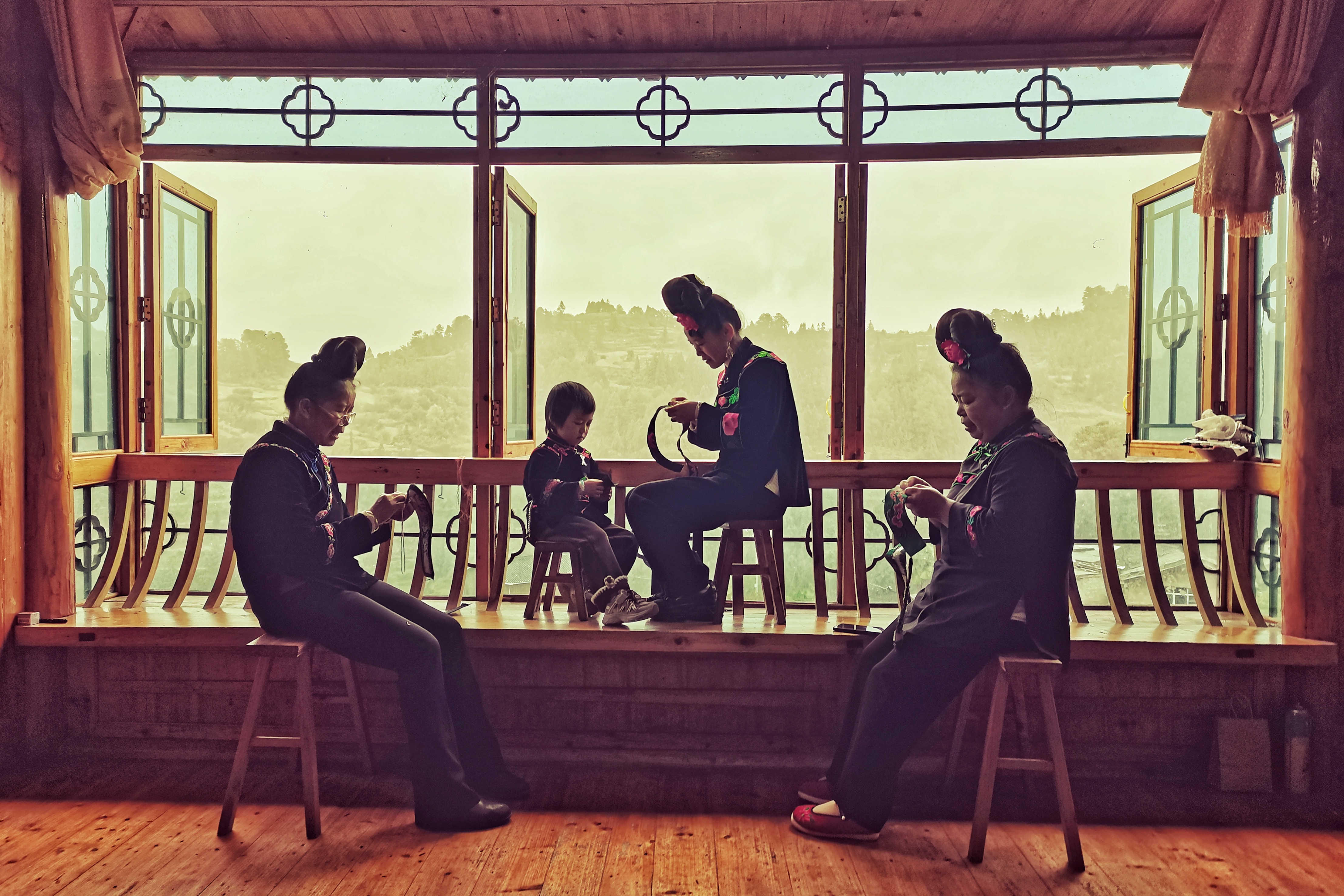 我們跟隨餘主任走訪了村裏的民宿集群。這些由傳統吊腳樓改造的特色民宿,既保留了苗族建築特色,又融入了現代生活設施。"去年全村接待遊客1萬餘人次,旅遊綜合收入150萬元”。餘主任的話語中透著自豪。透過取景框,我看到了鄉村振興在這片土地上的生動實踐——古老的村寨正在煥發新的生機。更令人興奮的,是貓貓河村素有是“詩歌之鄉”的美譽,村民們較有一定的文化素養,閒暇之餘,唱歌賦詩,每位村民上至髦別老人、下至都小孩都會作詩,這些都奠定了貓貓河村的文化底蘊。該村故事2025年7月25日,被人民日報以《詩歌的種子就藏在這山溝溝裏——藝術改變鄉村”發表,吸引了來自全國各地及海內外的文人墨客到此采風和體驗,紛紛被淳樸的民風和濃郁的文化底蘊所吸引。特別讓人感動的是村裏的"銀髮繡娘"。老年婦女教年輕女孩學習苗繡,苗繡分為平繡、破線繡、縐繡、辯繡、貼布繡、鎖繡,學員中不僅有本村青年,還有慕名而來的大學生,在傳授的過程中 不時傳來銀鈴般的苗歌對唱,感受到她們對現在的幸福生活的滿足和對將來美好生活的嚮往,苗繡傳承人、縣人大代表李敏說:我要把這老祖宗的苗繡手藝傳下去,這才是我們鄉村要振興的根啊!”這樸實的話語,讓我們深刻理解了文化傳承在鄉村振興中的重要意義。