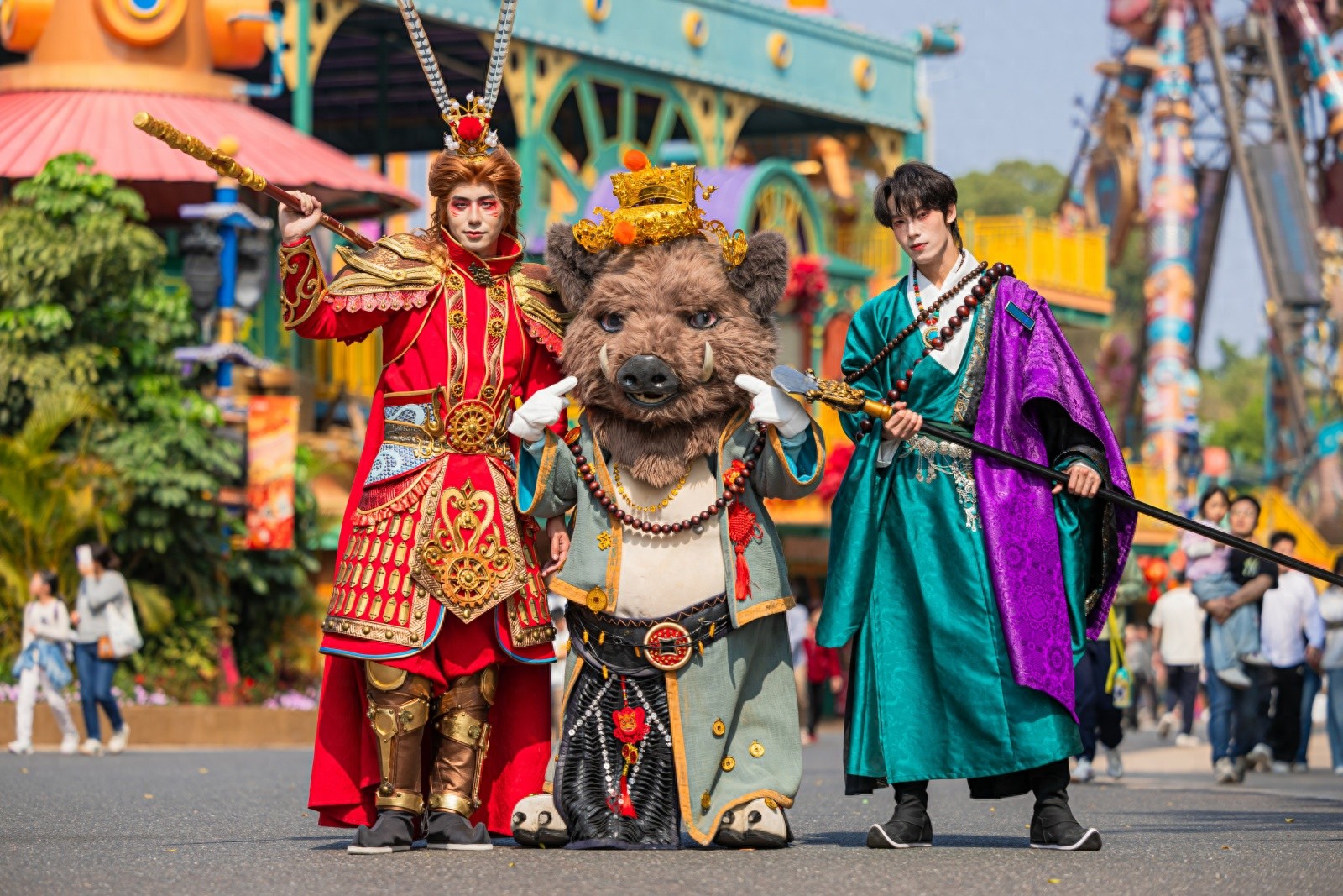 走进长隆欢乐世界已是浓郁的新春氛围。长隆欢乐世界全新变身“欢乐财神村”,将岭南传统年俗与游乐体验深度结合,让传统非遗在沉浸式场景中焕发新生。园区引入多项非遗展演,气势十足的英歌舞铿锵起舞,寓意美好的“抢包山”实景呈现,搭配极具岭南特色的鳌鱼灯展,全方位展现地道广府年味。游客还可亲身参与各类传统演艺,漫步“八方接财”福气路线,体验许愿灯、非遗拓印画、花街漫步等特色项目,一站式沉浸式感受新春氛围与团圆欢乐。