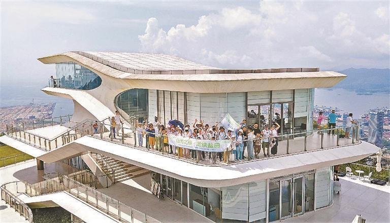 深圳平安金融中心云际观光层:深圳平安金融中心云际观光层是深圳的“天际线地标”,乘坐高速电梯,仅需几十秒便可抵达547.6米高的观光层,这里是深圳目前最高的观景平台之一。站在观光层的落地窗前,360度全景落地窗将全城风光一览无余,东望梧桐山连绵绿意,西眺深圳湾跨海大桥壮阔身姿,南望香港天际线,北瞰福田 CBD 繁华楼群。