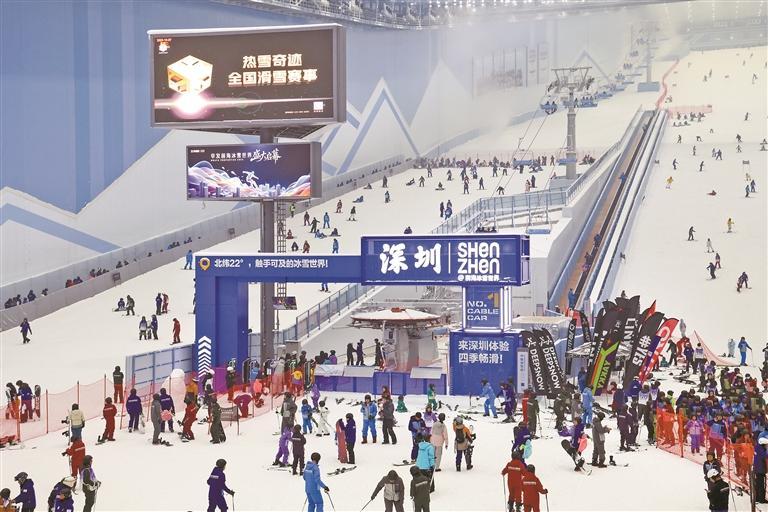 深圳·前海冰雪世界:面积近10万平方米、坐拥5条专业雪道,深圳·前海冰雪世界雪区全年-6℃恒温,造雪机持续造雪贯穿四季。缆车索道穿梭其间,从高空俯瞰这片冰雪奇境,感受不一样的震撼与美丽。即使不滑雪,也有丰富的雪上项目供游客选择,滑雪圈、雪上卡丁等娱乐项目可以让你在这片冰雪世界尽情畅游。
