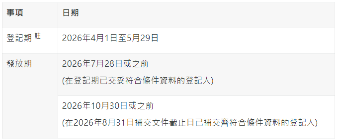 註:倘登記人在上述登記期提交的文件未符合要求,教育基金於2026年7月28日或之前