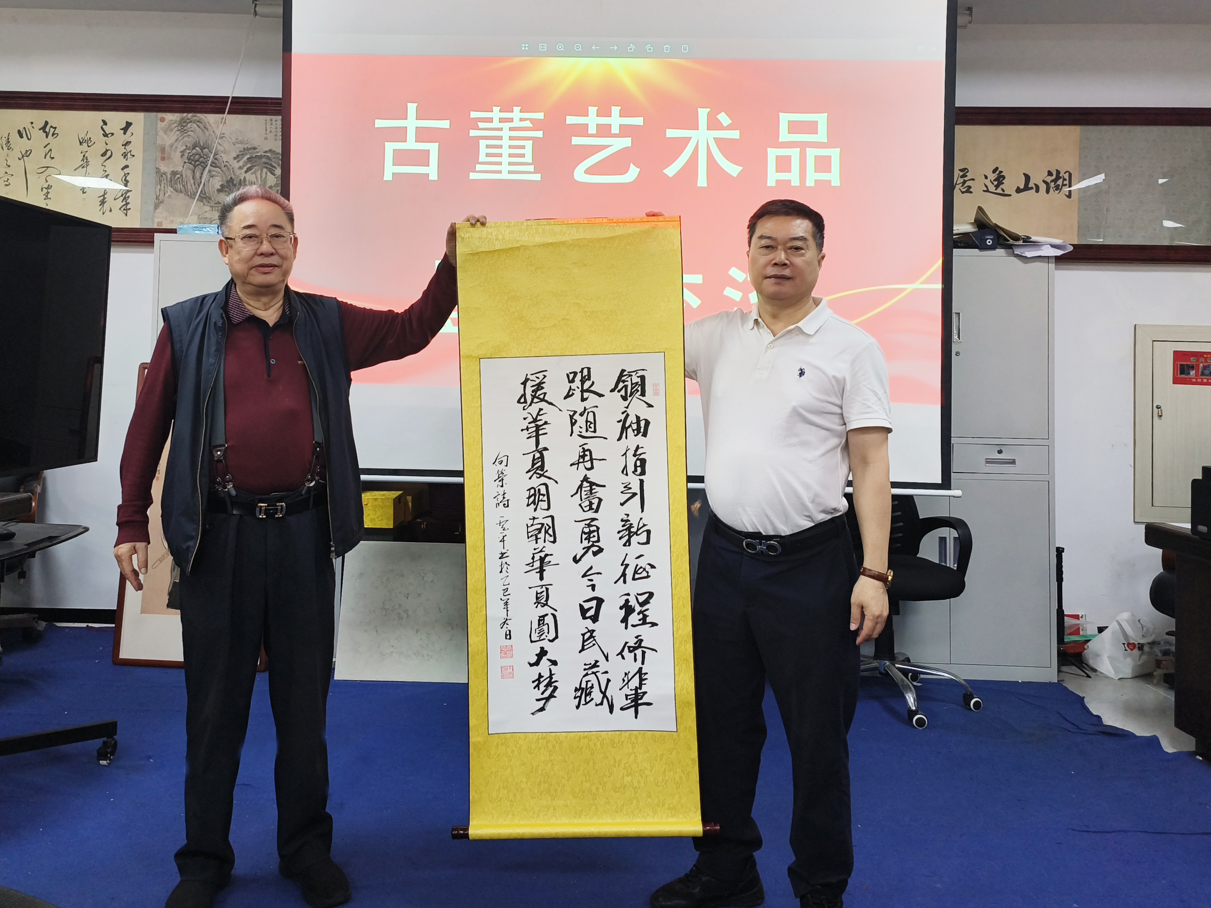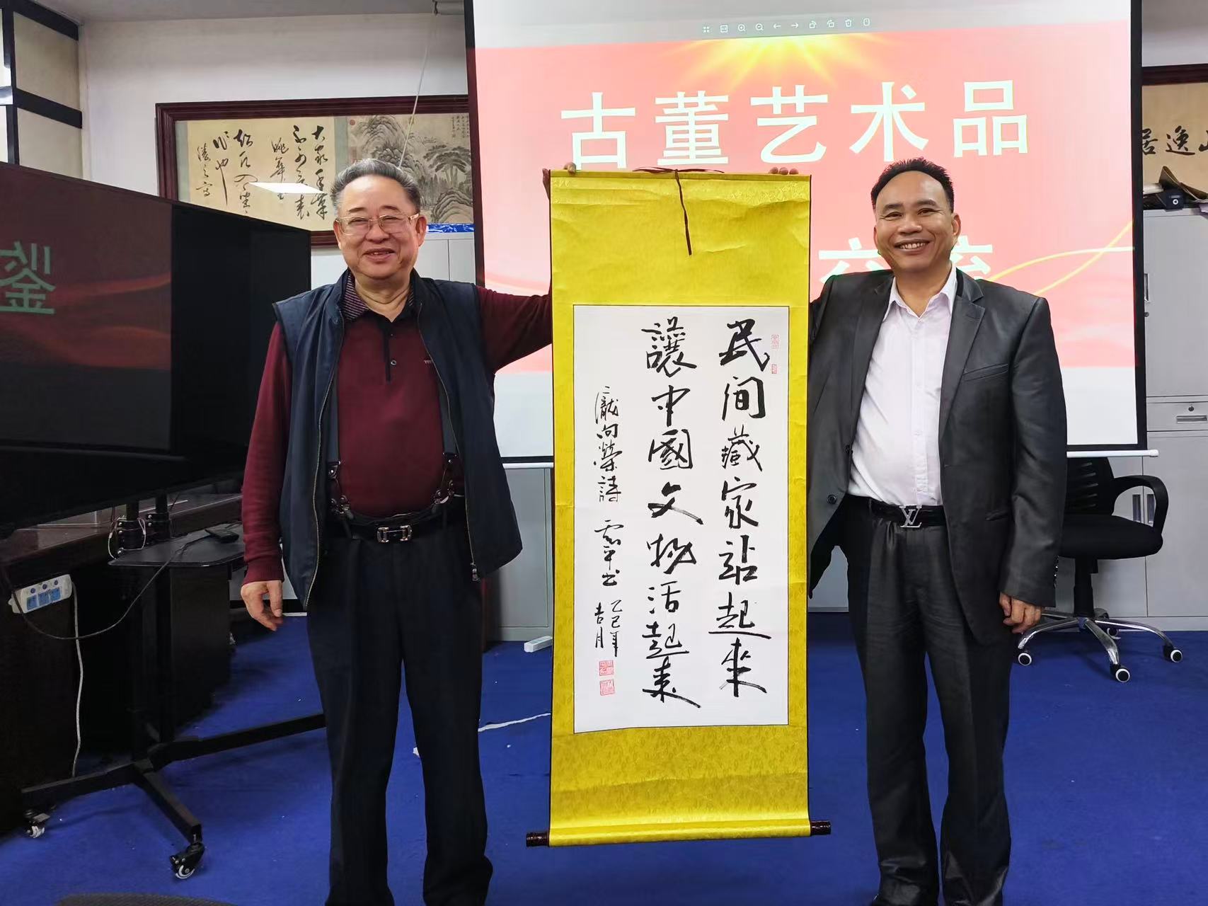 庞馆长的致辞,引起了在场同仁的共鸣,庞馆长年逾七旬,退休前是珠海机场集团公司党委副书记、常务副总,由于热爱收藏和传统文化,退休后16年如一日,不休息,不旅游,潜心研究收藏文化艺术品,并创建了珠海凤舞九天艺术品管理有限公司和龙祖宫艺术馆、全国退役军人就业创业促进会文博产业(珠海)基地。在他的带领下,公司团队坚守初心,矢志不渝,砥砺前行,收藏了数千件文物艺术品,总结创造了“目检科检相结合,‘三位一体’辨真假”的艺术品鉴定方法,在国家版权保护局取得有效登记,他们的创业历程被央视、中华文化信息协会、中国传统文化促进会广泛宣传报道。为扶持民间藏家站起来,这次古董艺术品鉴赏交流会专门设置了免费鉴定、免费送拍、免费授课环节。呼个承办公司准备在为民间藏品确权确真确值的基础上,开辟多种变现融资渠道,助力文物艺术市场资产化、金融化、证券化。