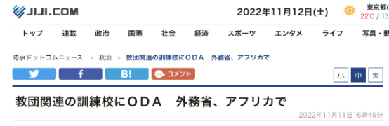 【环球网报道】综合日本共同社、时事通讯社11日报道,日本外务大臣林芳正当天在众议院外务委员会会议上答辩时承认,外务省曾向与宗教团体“世界和平统一家庭联合会”(原名为统一教会,下文简称“统一教”)有关的非政府组织无偿提供约955万日元(约合48.8万人民币),用于在非洲国家塞内加尔建职业学校。