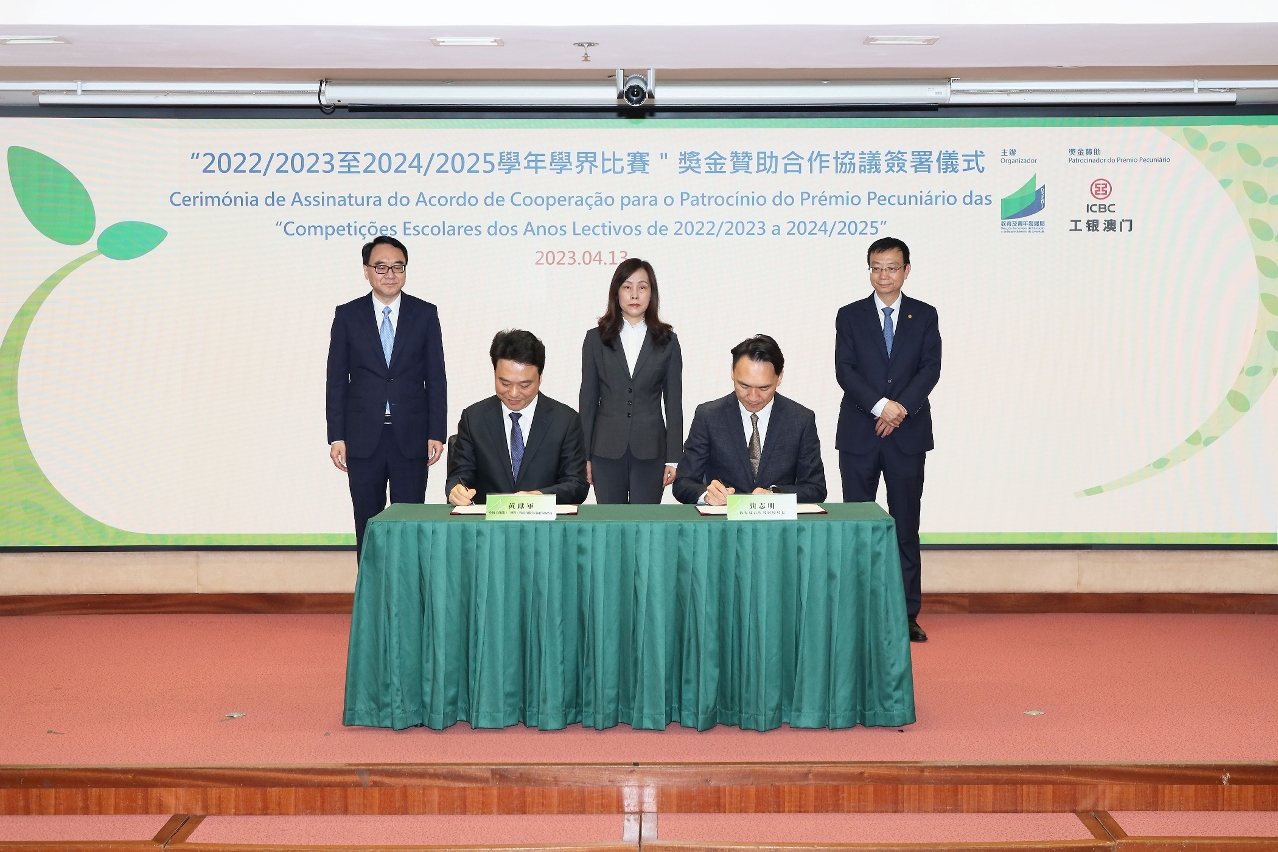2022/2023至2024/2025學年學界比賽獎金贊助合作協議簽署儀式於2023年4月13日在教青局仲尼堂舉行。在社會文化司司長歐陽瑜、中央人民政府駐澳門特別行政區聯絡辦公室教育與青年工作部部長李雪飛、中國工商銀行(澳門)股份有限公司行政總裁牛建軍的見證下,教青局局長龔志明與中國工商銀行(澳門)股份有限公司副行政總裁黃獻軍簽署獎金贊助合作協議。