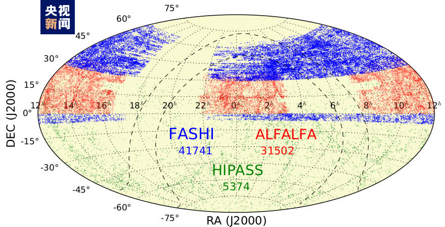 中国天眼中性氢巡天(英文缩写FASHI)仅用三年(2020年8月—2023年7月)时间就完成了约7600平方度的巡天观测,发现了41741个中性氢星系样本。样本数量和数据质量远超国内外其他中性氢巡天项目。预计未来五年,将探测到十多万个中性氢星系。