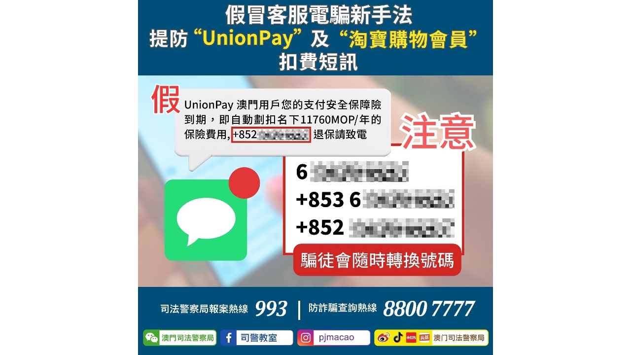 司警调查得悉,该诈骗集团在网上招客后,以不同组合的「工程人员」上门做防漏水工程,所使用的防水浆为次货,每公斤只需三十元人民币。其余三名事主亦被相同的手法诈骗,损失由一万八千至二万一千澳门元不等。至前(七)日掌握盛某经横琴口岸入境将他拘捕,其承认受雇集团犯案,声称只负责高士德两个单位的事主工程,事成每次可获工程费的三成作报酬,其余费用转交给「上线」。司警不排除有其他人受骗,正追缉在逃同党的下落。◇