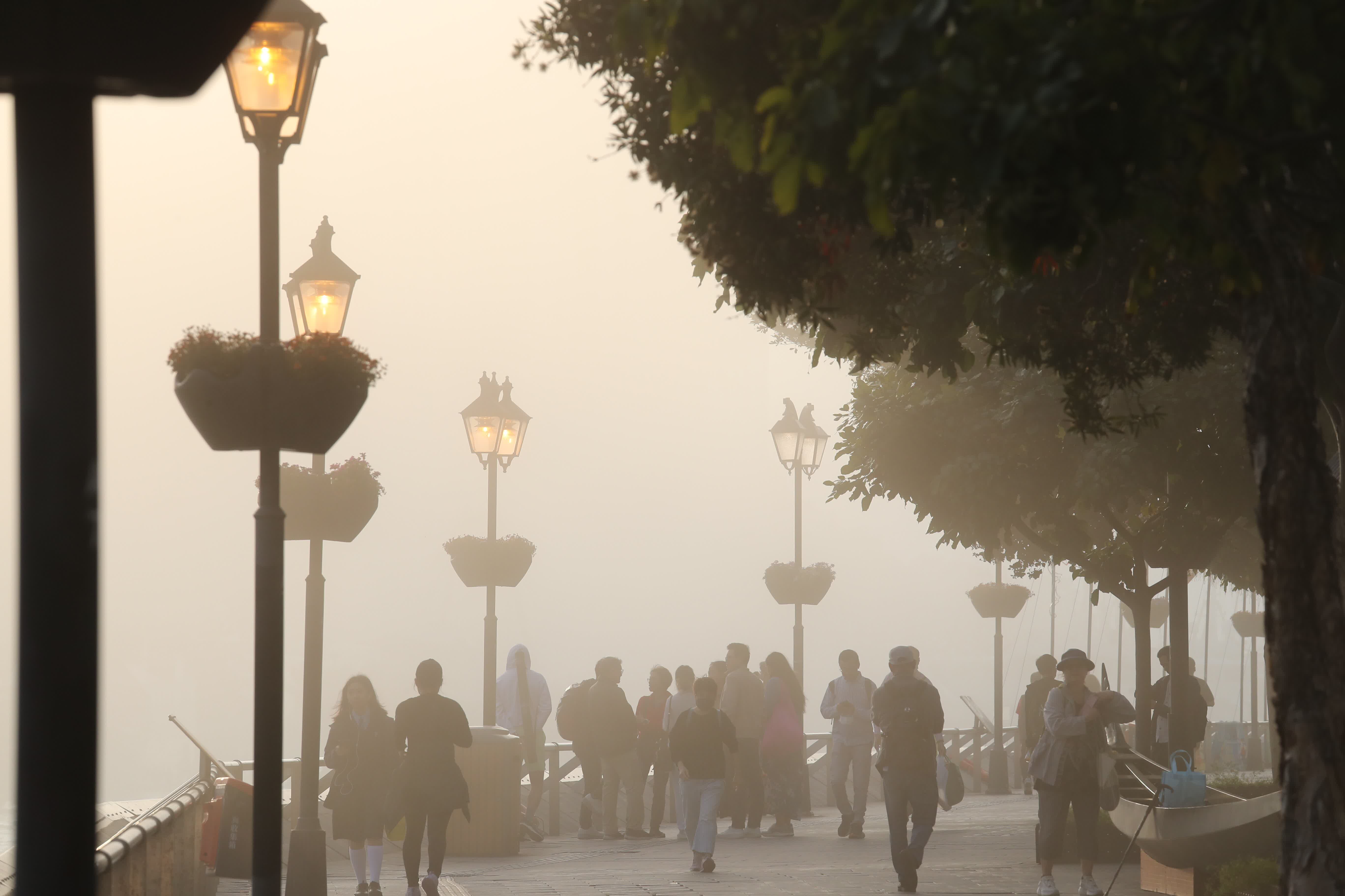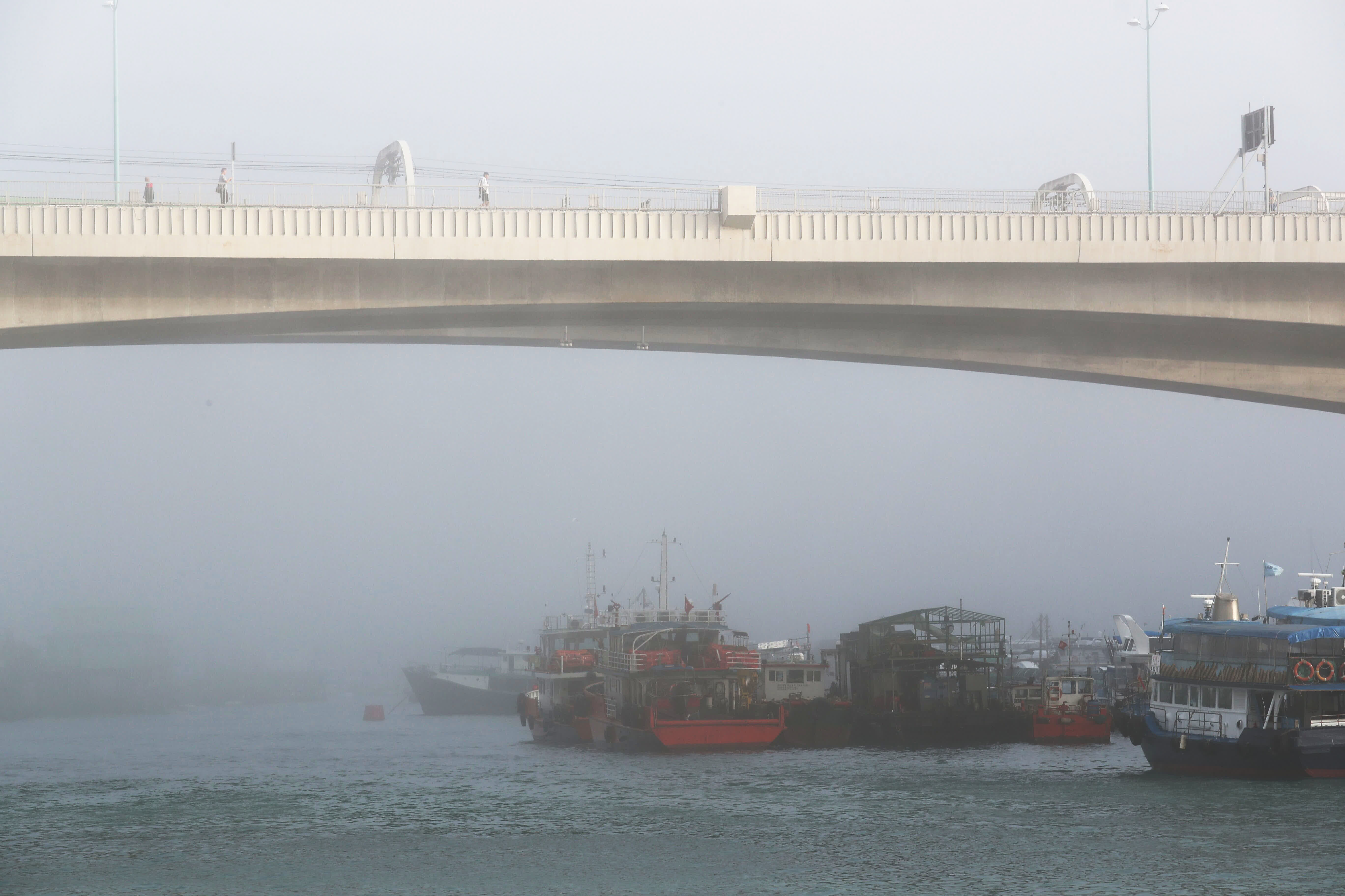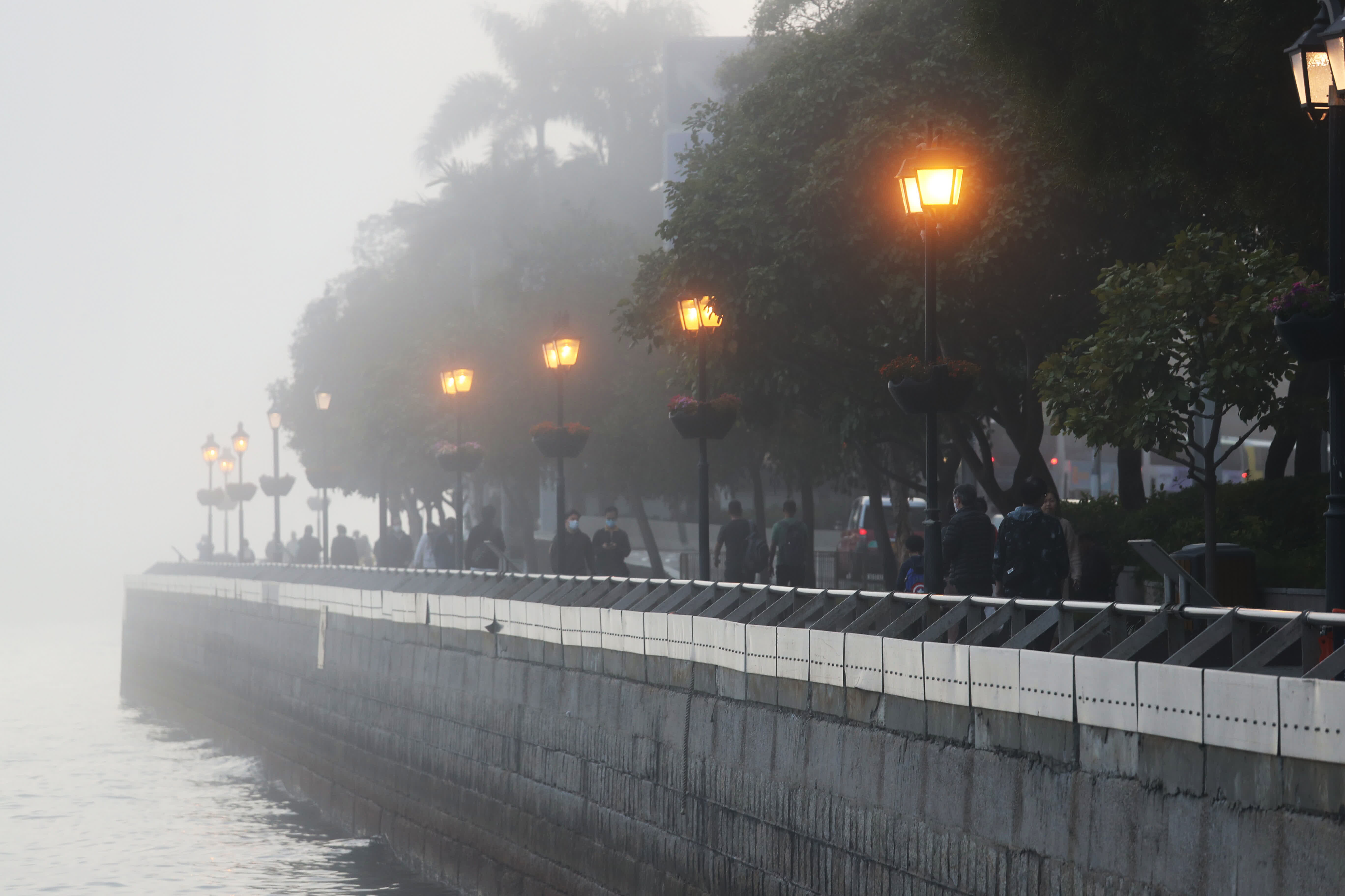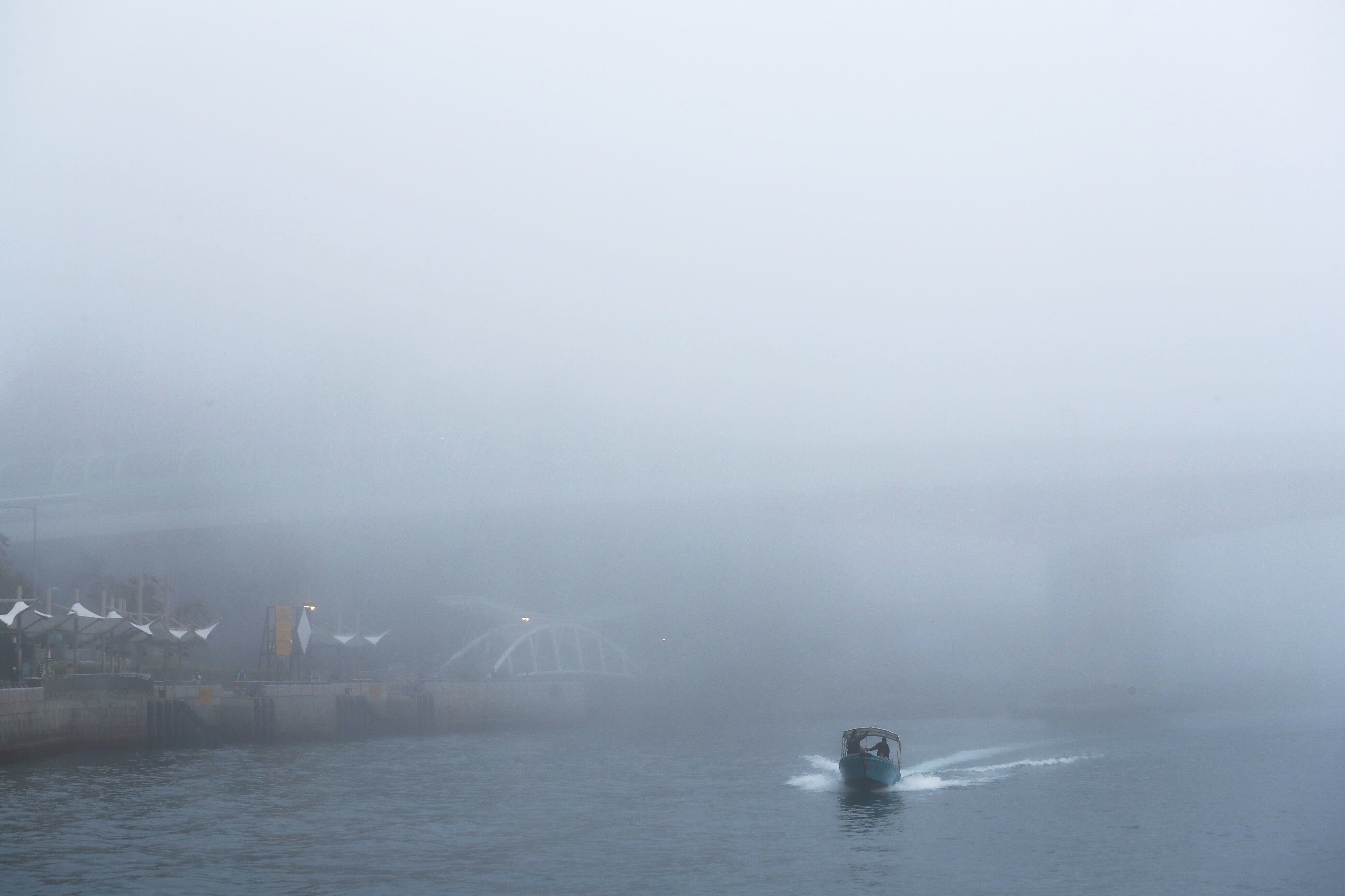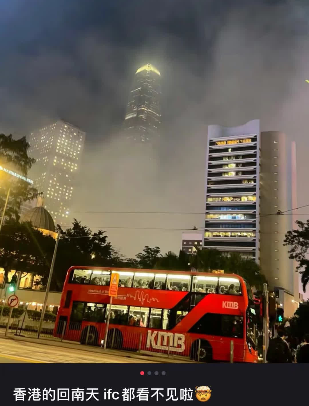 雾气朦朦中,香港著名地标IFC若隐若现。