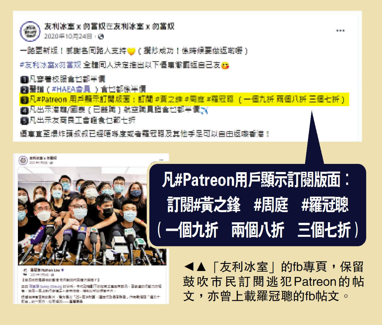 据了解,警方正追查罗冠聪Patreon的订户资料,曾高调向罗冠聪Patreon订户提供冰室折扣优惠的庄×鹏疑因此心虚离港。