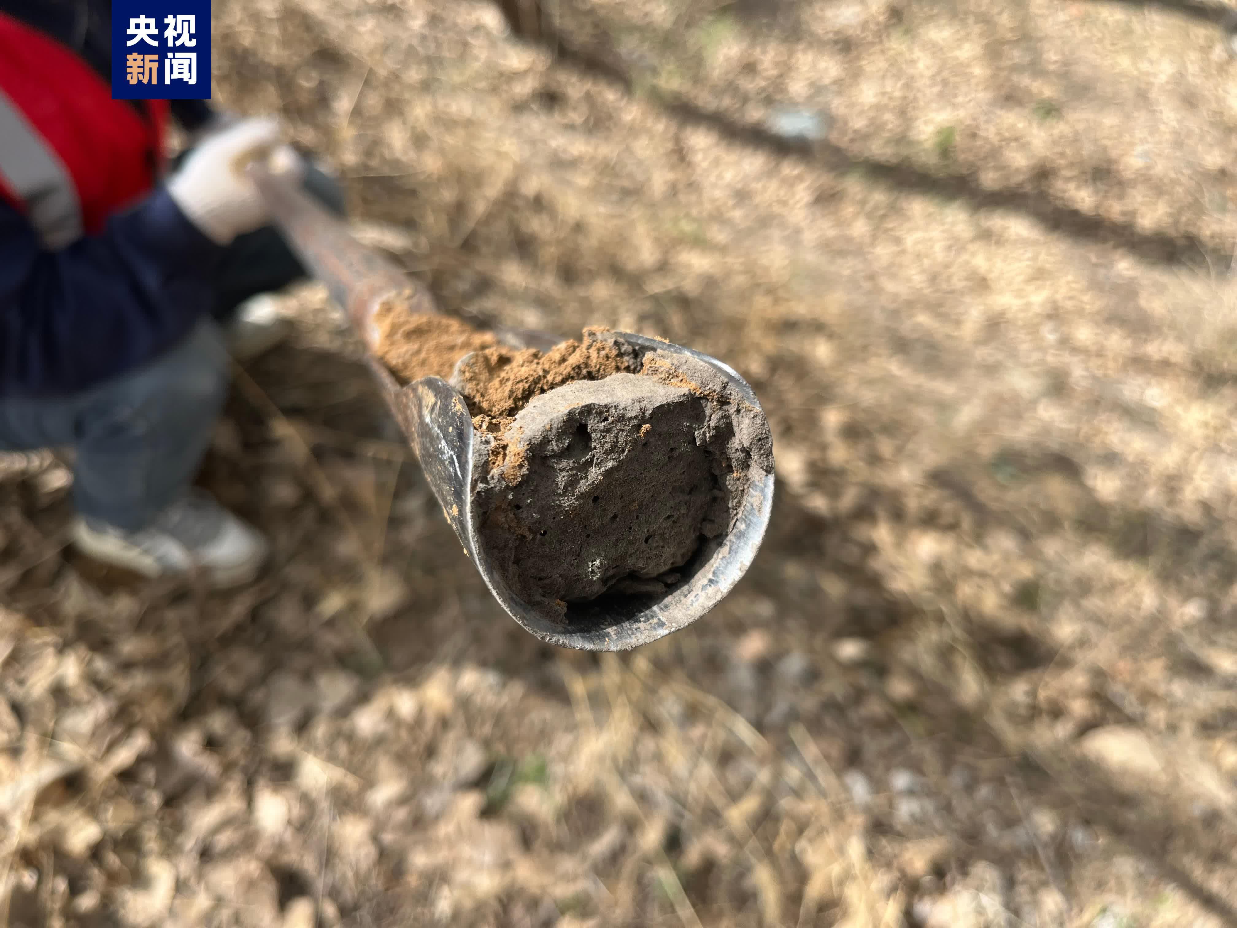 随后,工作队对发现古代遗物的区域进行调查性试探,探孔土样可见花土、砖渣及棺痕,判断该处区域确有古墓葬埋藏。