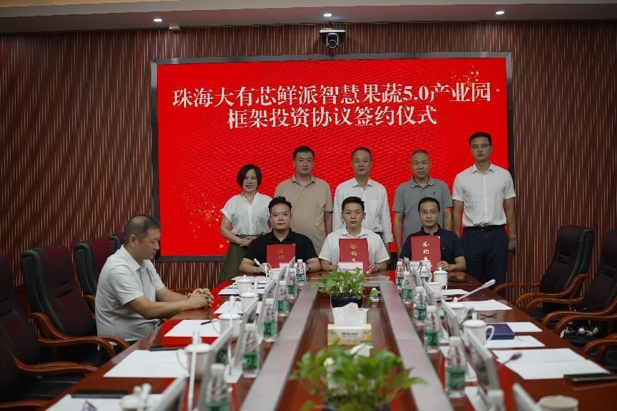 2024年9月20日,珠海金湾区南水镇政府与大有千懿能源发展有限公司、广东芯鲜派现代农业运营管理有限公司以及珠海市晨冉新能源有限公司就“珠海大有智慧果蔬5.0产业园”合作项目在南水镇政府举行签约仪式。