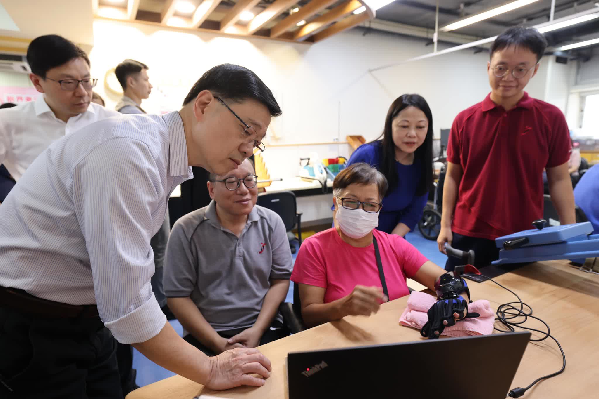 之后,李家超到日间社区康复中心视察,了解支援残疾人士和照顾者的服务。这间中心每年提供近15,000人次的康复训练及1,100人次的严重残疾人士日间照顾服务;亦会为照顾者提供训练活动及教育课程,强化他们的照顾能力及纾缓压力。他在中心内与数位残疾人士和他们的家人聊天,聆听他们对这类支援服务的想法。