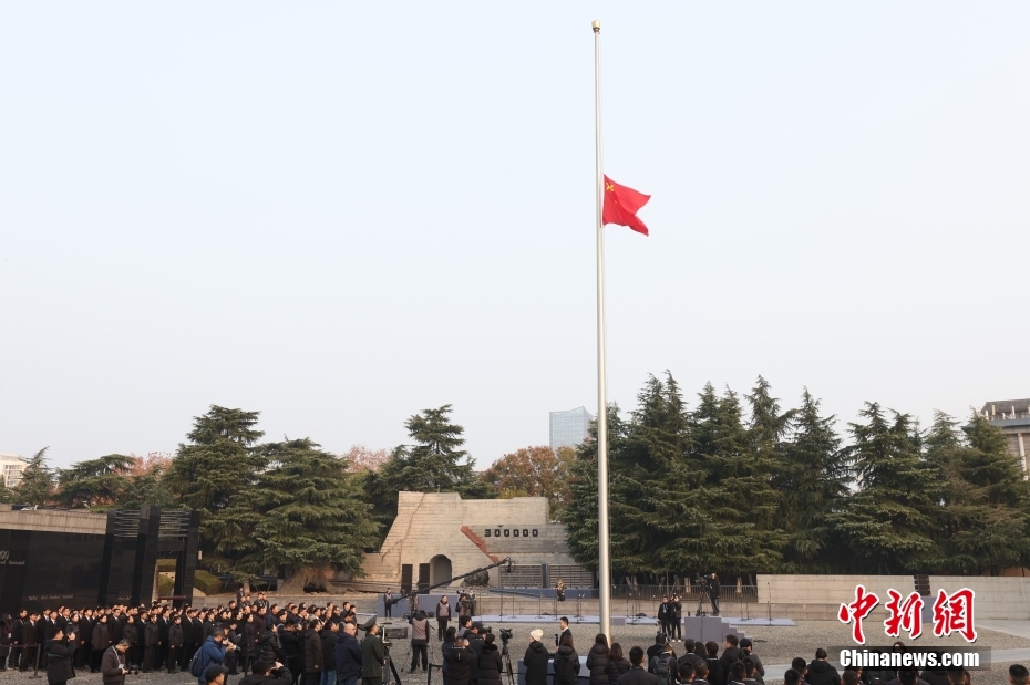 12月13日是第十一个南京大屠杀死难者国家公祭日,侵华日军南京大屠杀遇难同胞纪念馆举行升国旗、下半旗仪式。