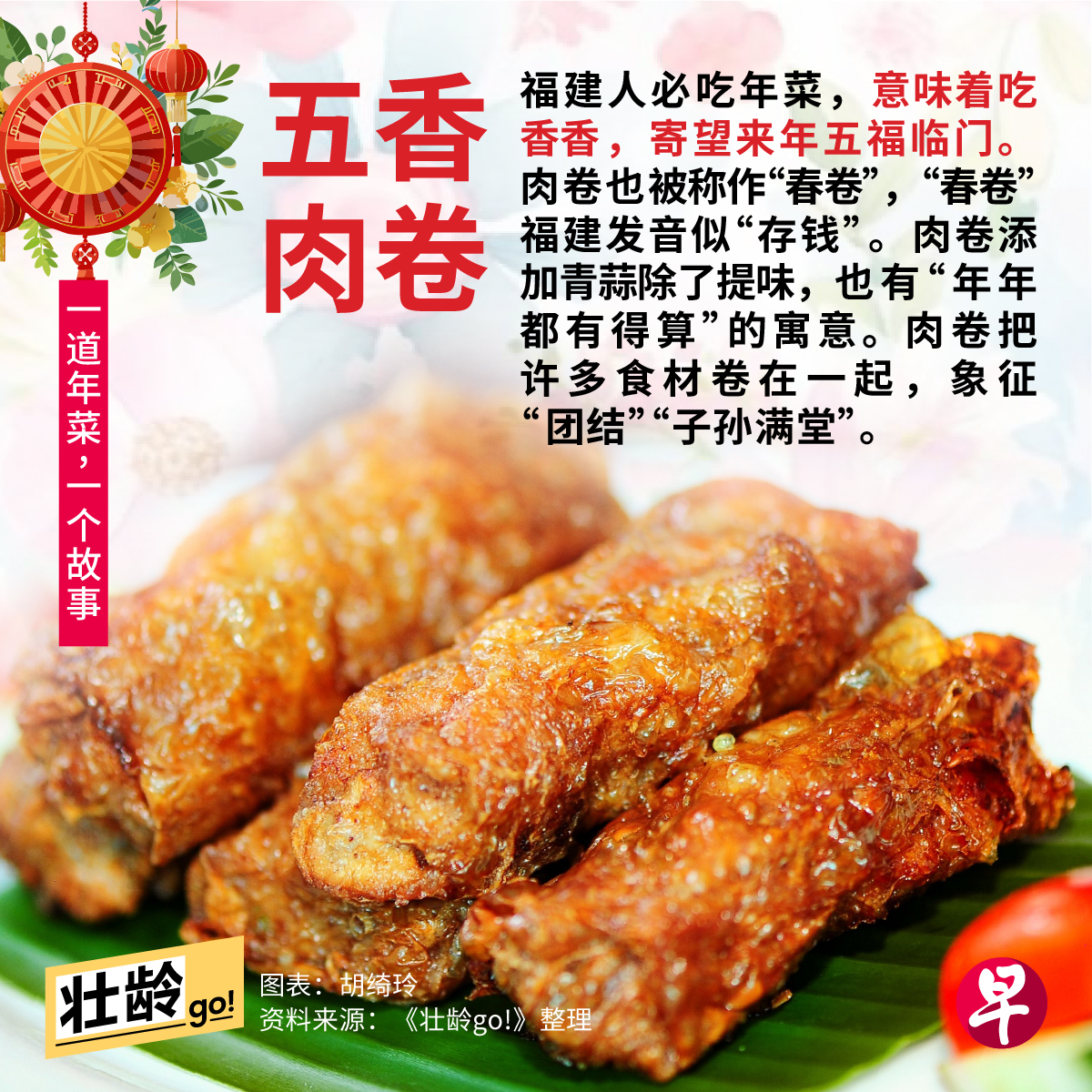 农历新年是华人重要节日,新春团聚,举筷大快朵颐更是重头戏,丰盛之余,很多年菜还蕴含吉祥好寓意。从象征家运兴旺的鸡,到“年年有余”的鱼,再到寓意“五福临门”的五香卷,每道菜都传递着对新年的美好祝愿。
