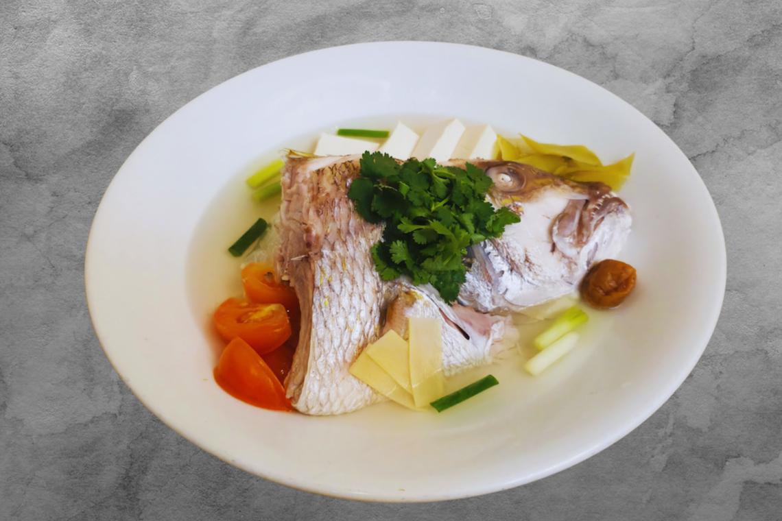 蒸红哥里鱼头(半个,$39)提供两种风味选择:一款以咸菜与番茄蒸煮,呈现熟悉老味道;另一款则结合豆酱与猪油渣,散发浓浓潮州风情。