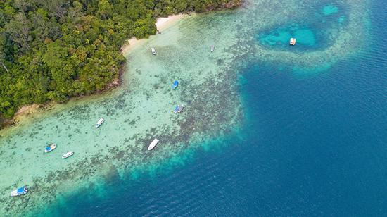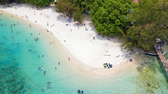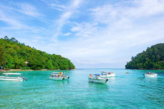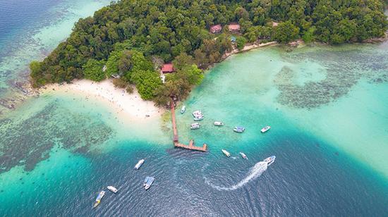 东姑阿都拉曼海岛公园的五座海岛中,沙比岛、马奴干岛、马穆迪岛最受欢迎,照片右侧为面积最大的马奴干岛,左侧为马穆迪岛。