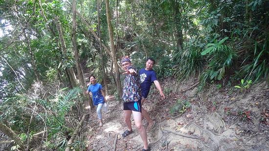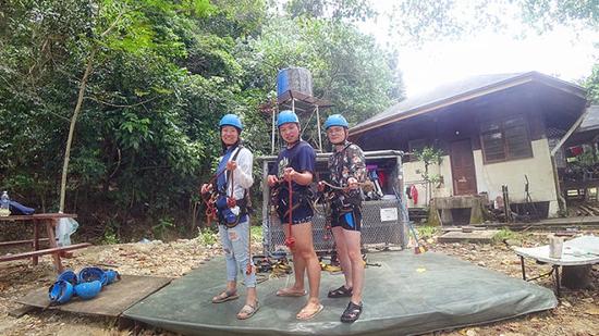 我们几个小伙伴,到达加雅岛凌空滑索工作站,穿戴好安全装备后先来张合影,大家都很期待这个项目。