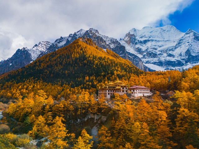 - 洛绒牛场:金黄草甸与雪山的绝佳搭配