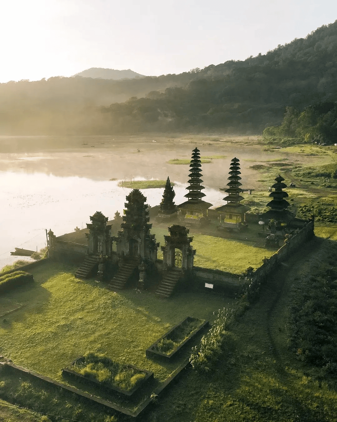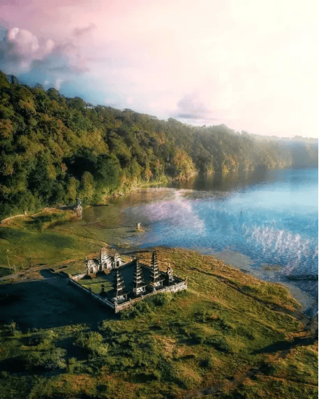 坦布林甘湖神庙(Ulun Danu Tamblingan Temple),在雨季水位高的时候,看起来就像漂浮在湖上,如同神迹。湖水退去时,能看到坦布林甘湖神庙布满青苔,在薄雾的早晨显得更加超凡脱俗。这里没有人群,没有商场,只有和平与宁静——自然、文化和历史。