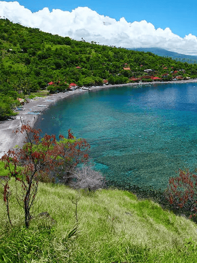 艾湄海滩(Amed Beach)艾湄海滩上大多是黑沙,富含营养的黑色火山沙造就了拥有各种海洋生物的珊瑚礁,这里非常适合潜水、浮潜等各种水上活动。