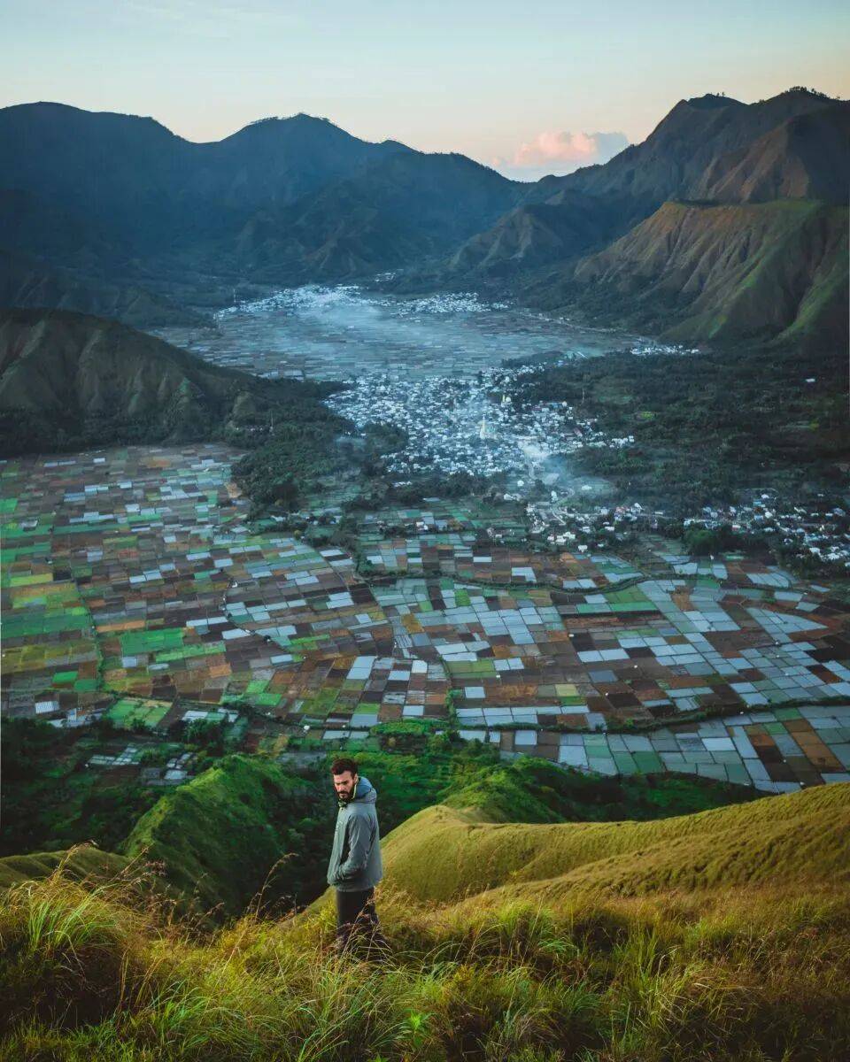 这里,不是大地的眼影盘,是森巴伦村(Sembalun),它位于林贾尼火山脚下,是攀登火山的入口之一,森巴伦村海拔1156m,上山路相对比较平缓,这也是大多数人推荐的线路,在这里休息一晚,第二天开始火山之旅吧。 。