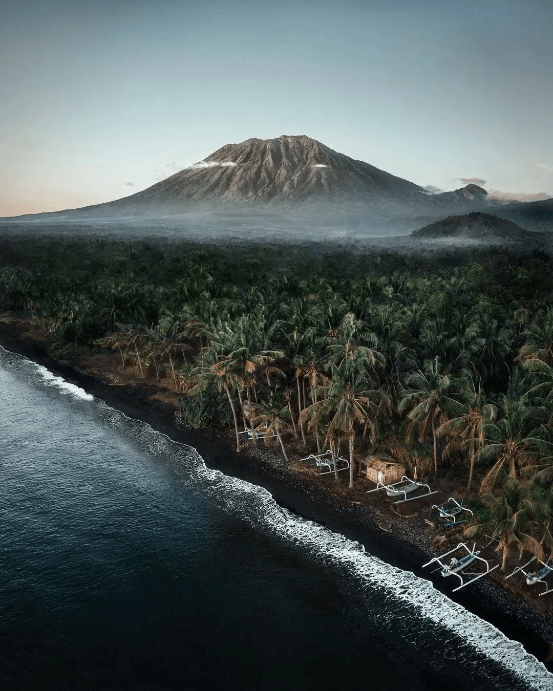 天雅海滩(Tianyar Beach)看多了奶昔般的白沙滩、粉沙滩,来看看另一种画风的黑沙滩吧,蕴含着丰富火山灰营养的黑沙滩,别有风情,海浪打上来,仿佛黑夜被卷起,很神奇的画面。