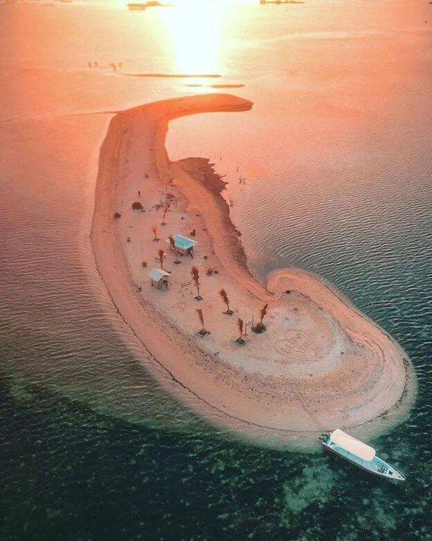 谁不喜欢在一个可爱的岛屿上度过一段美好的时光呢?距离西巴厘岛国家公园不远的 苏贝齐玛吉利岛(Gili Putih Sumberkima)就是这样一座神奇的海岛,白色沙滩飘浮在海面上,是一个独处的私享秘境 。