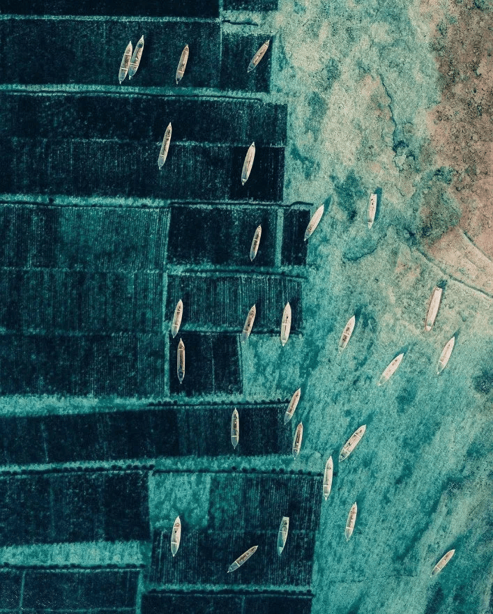在金银岛和蓝梦岛之间,还有一大片海藻养殖场,俯瞰这个区域,你会收获令人震撼的眼影盘。这是大自然和人力共同创造的奇迹之美。如果你喜欢航拍,不要错过这里