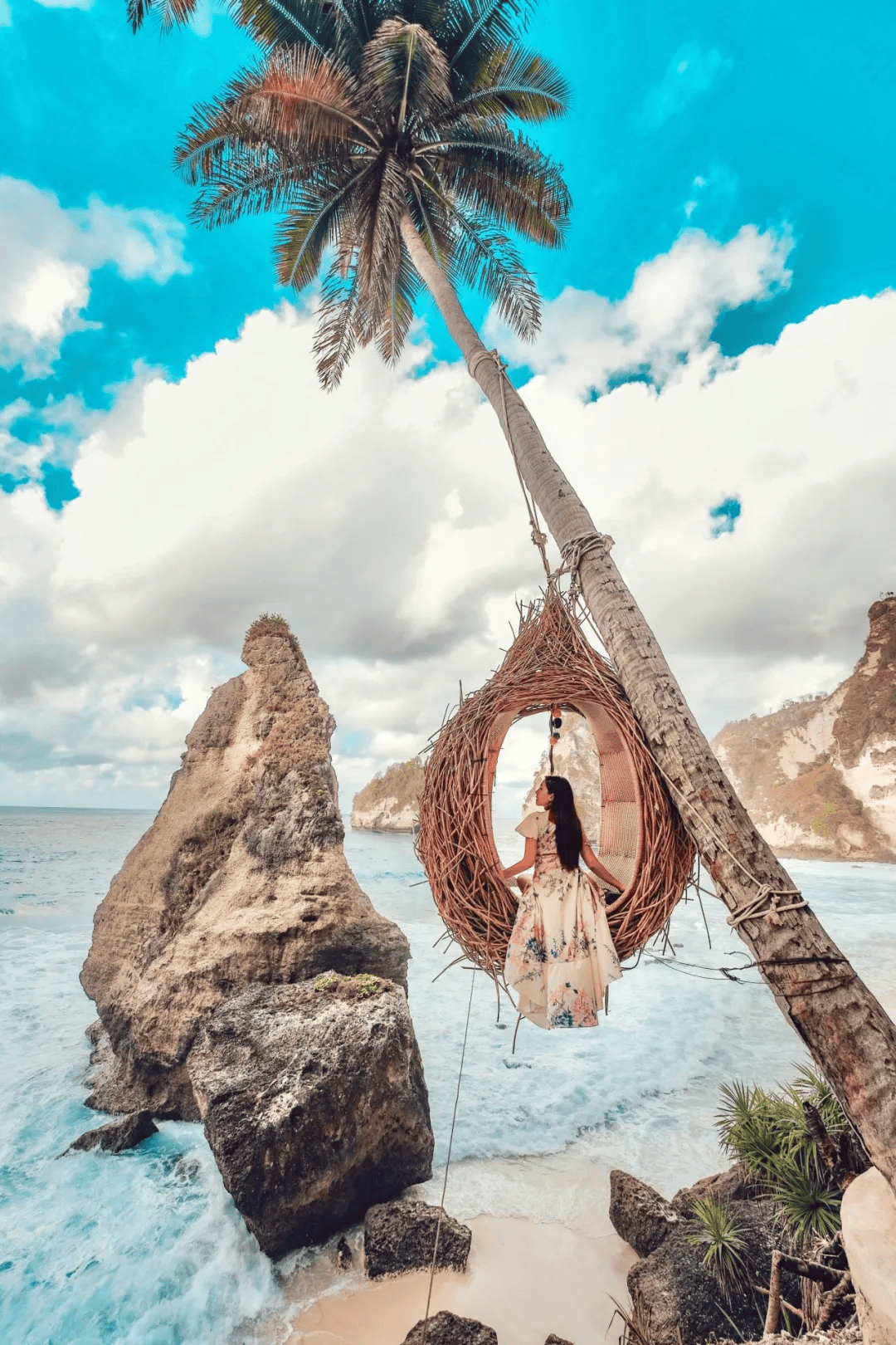 钻石沙滩(Diamond Beach),在努沙佩尼达岛的东部,游客稀少,水中的巨岩形似大钻石,非常耀眼浪漫。另外,这里的海边秋千和鸟巢堪称经典,关键是人少不排队。不远处的树屋(Tree House)是夕阳给“钻石镀金”的绝佳拍照点。