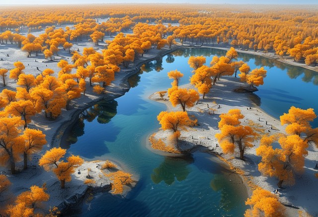塔里木胡杨林位于塔克拉玛干沙漠东北边缘,游客可以体验穿越沙漠公路的独特旅程,沿途还可能偶遇野骆驼群,感受沙漠的广袤与神秘,这种在沙漠中与胡杨林亲密接触的体验别具一格。