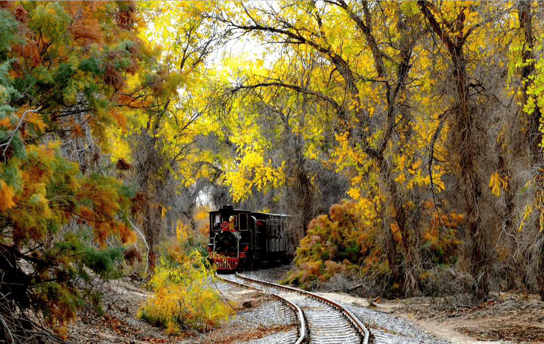 这里的胡杨与蜿蜒的塔里木河相互依偎,形成 “水映胡杨” 的独特景观。乘坐公园内的小火车穿行于林间,金色树冠在蓝天下舒展,倒映在河水中形成对称的完美世界,这种水景与胡杨的结合在其他胡杨林景区较为少见。