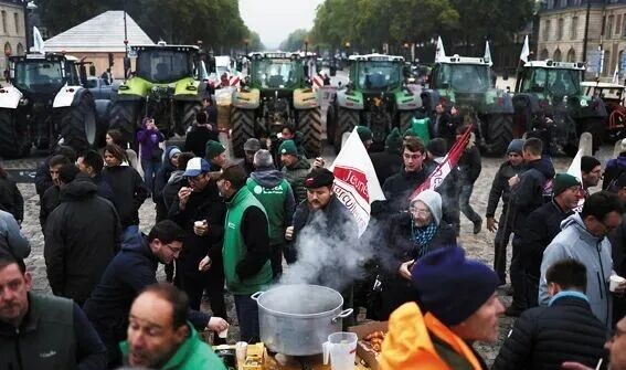 ▲法国最大农业联盟FNSEA近日在巴黎凡尔赛宫前抗议欧盟与美国部分关税政策,损害了法国经济。