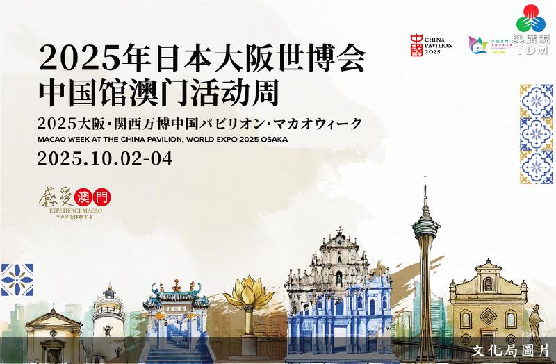 特區政府主辦的“2025大阪世博會澳門活動周”將於週四至週六 (10月2-4日)在日本大阪世博會中國館舉行。文化局表示,期望推廣澳門的世遺、非物質文遺及大型節慶盛事,向全球旅客展現本澳東西文化交融薈萃、古今輝映的獨特城市魅力。