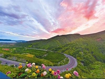 路过三家店服务区可以停下来赏赏景。因为从这里向下望去,可以看到津围北二线像一条巨龙一样盘在山腰蜿蜒游动;向东南方向远眺,几乎能够看到翠屏湖的全貌,而在2023年提升改造前这里只能看到一部分景色。