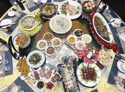 如果您这会儿赶上午餐时间,可以驾车8分钟到本市首个乡村类国家4A级旅游景区郭家沟景区品尝农家院的菜品,也可以行驶15分钟到穿芳峪镇,尝尝文旅融合的新产物——非遗美食宴,品味流传百年的新鲜美味,“千丝万缕”“万卷诗书”“鱼跃龙门”“卧薪尝胆”……除了这些听起来就书卷气十足的大菜,也可以选择品尝官善熏肠、桑梓豆片、蓟州八大碗、金桶千层饼、刘氏石磨元宵等近20种蓟州区非遗美食。