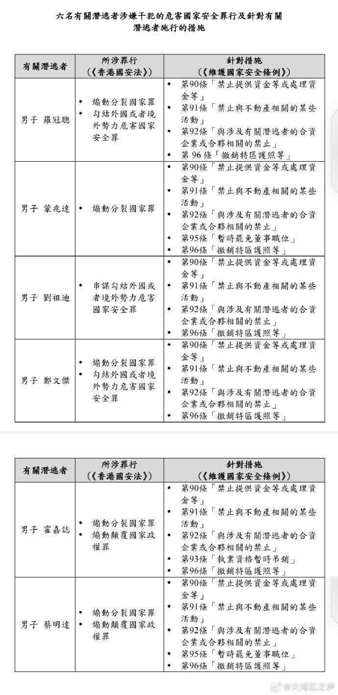李家超指,罗冠聪涉嫌干犯危害国家安全罪行,被法院发出拘捕令,是《维护国家安全条例》下的指明潜逃者,特区政府终身追究其法律责任,任何国家都不应包庇罪犯。他续称危害国家安全是严重罪行,特区政府有法必依、执法必严、违法必究,会用一切可行的方法,终身追捕罪犯,更不会放过任何潜逃者。